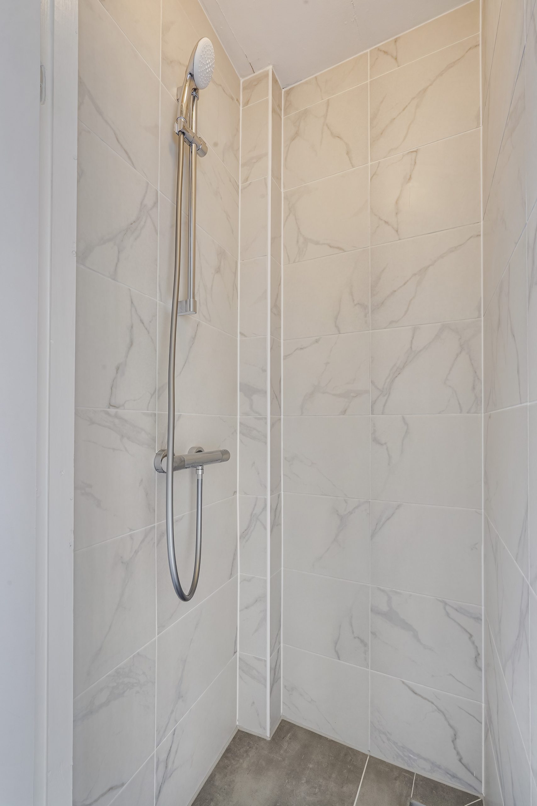 Via de tweede binnentrap toegang tot de tweede verdieping. Bovenaan deze trap op de slaapverdieping een separate douche. Slaapkamer met veel lichtinval. Aangrenzend een praktische kamer die mede kan dienen als werkkamer. In deze kamer ook een wasmachine aansluiting en wastafelmeubel.