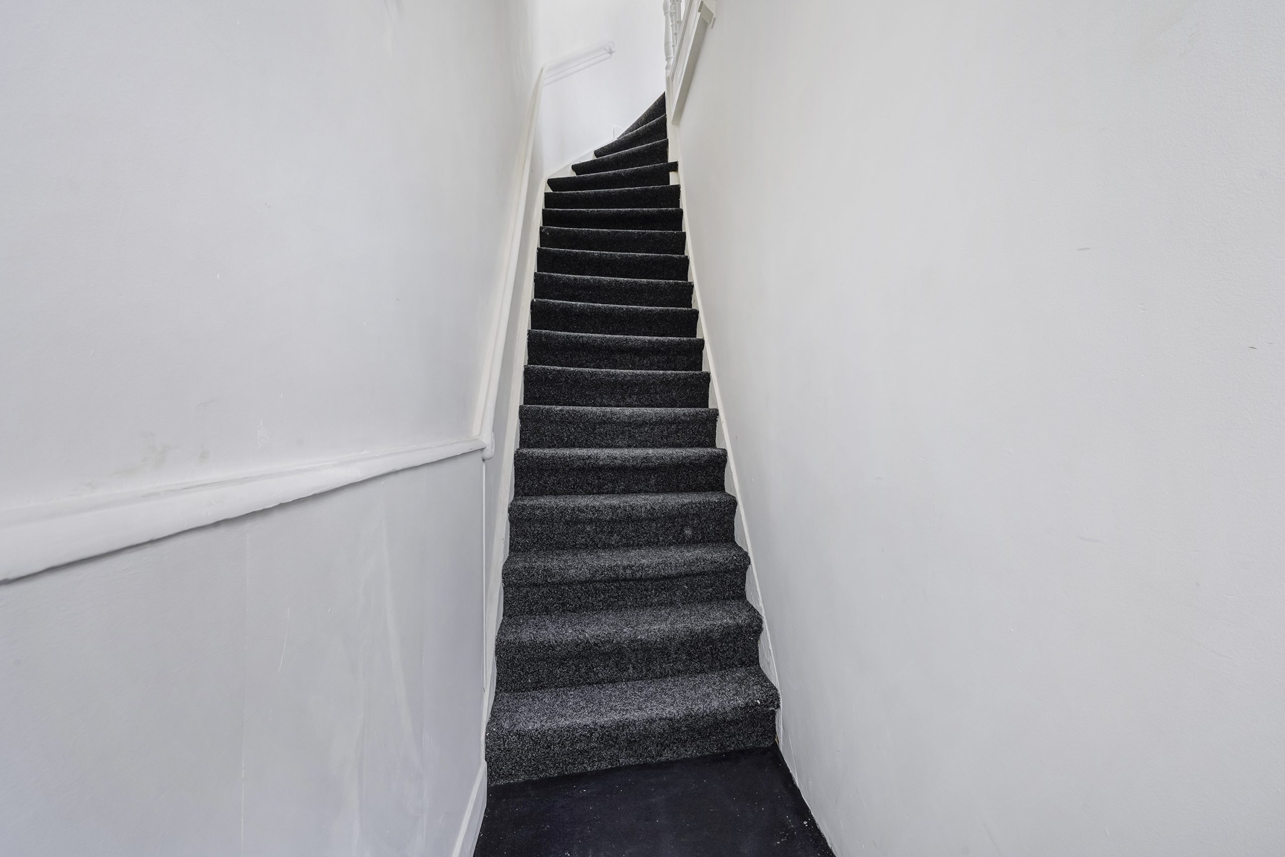 Toegang tot de woning op straatniveau. Via de hal en binnentrap naar de eerste verdieping. Bovenaan de trap een separaat toilet. Lichte woonkamer met open keuken met Cv-installatie opstelling.