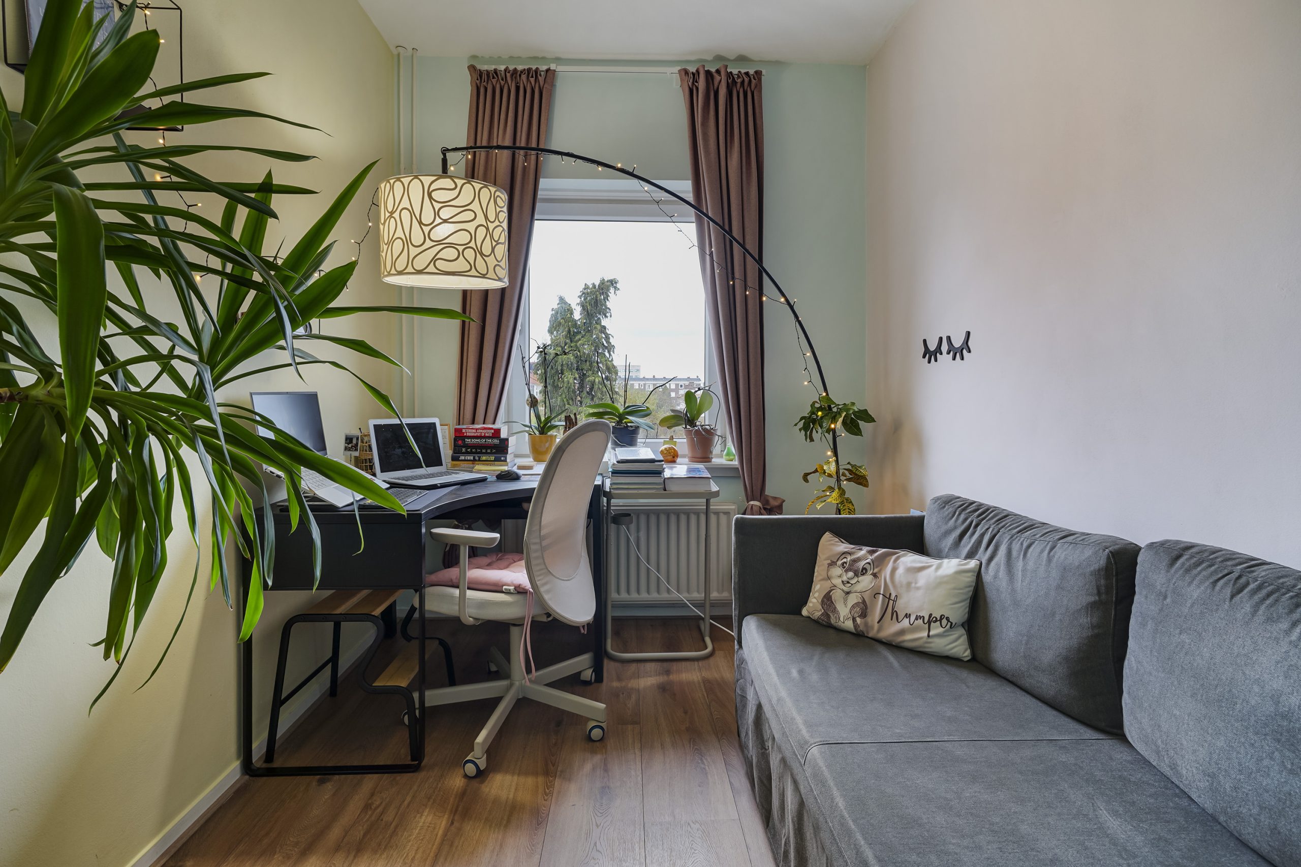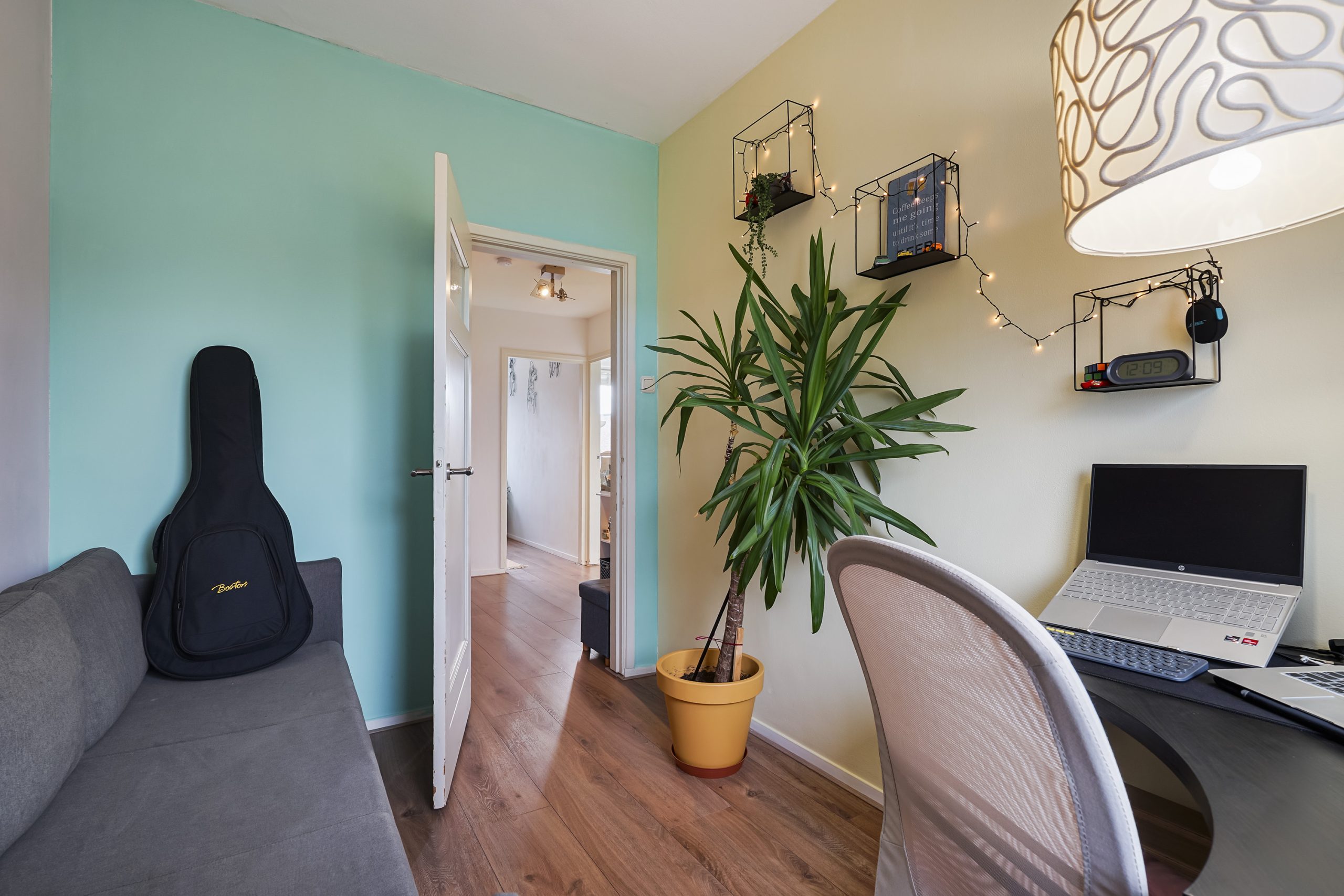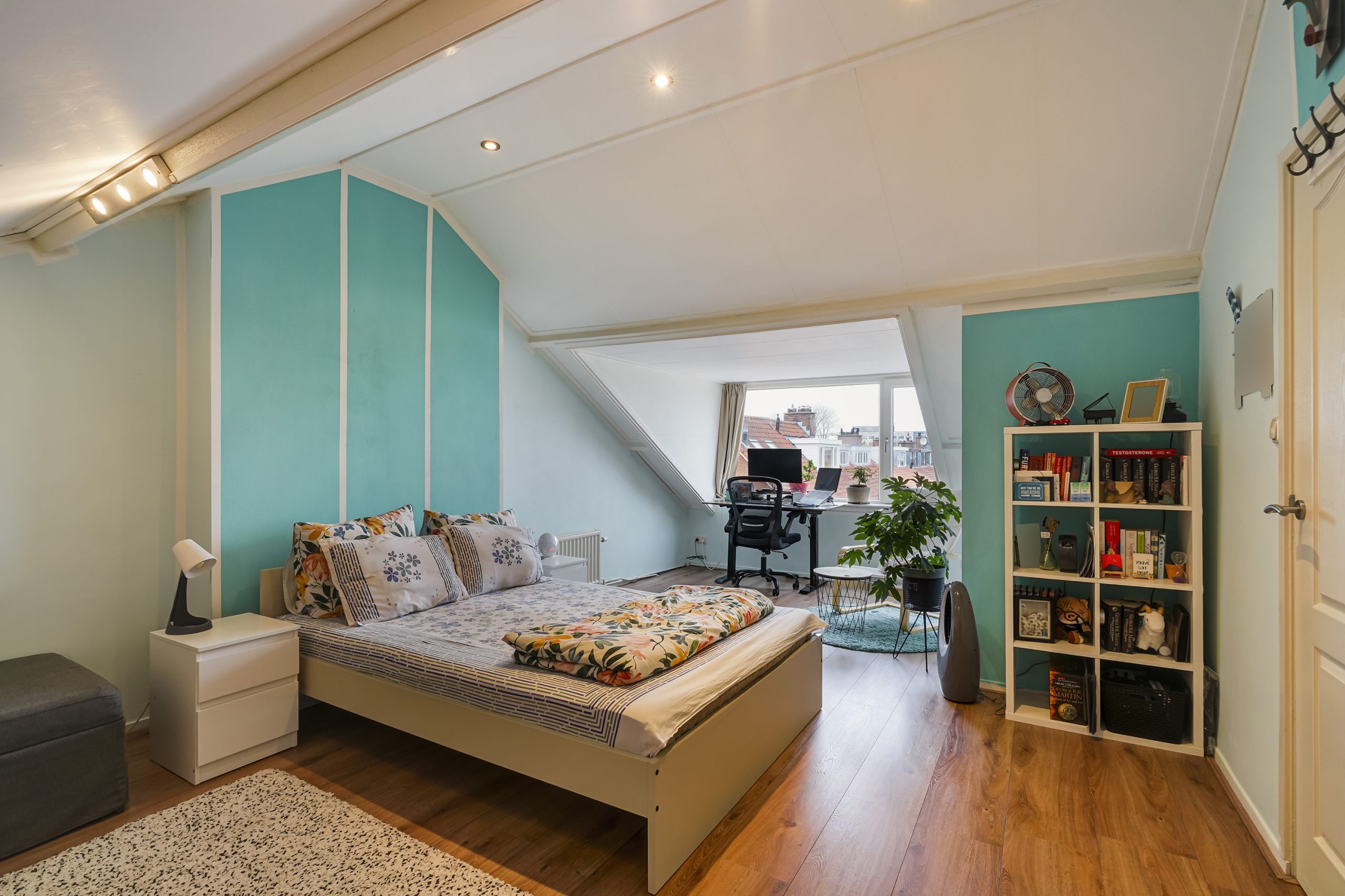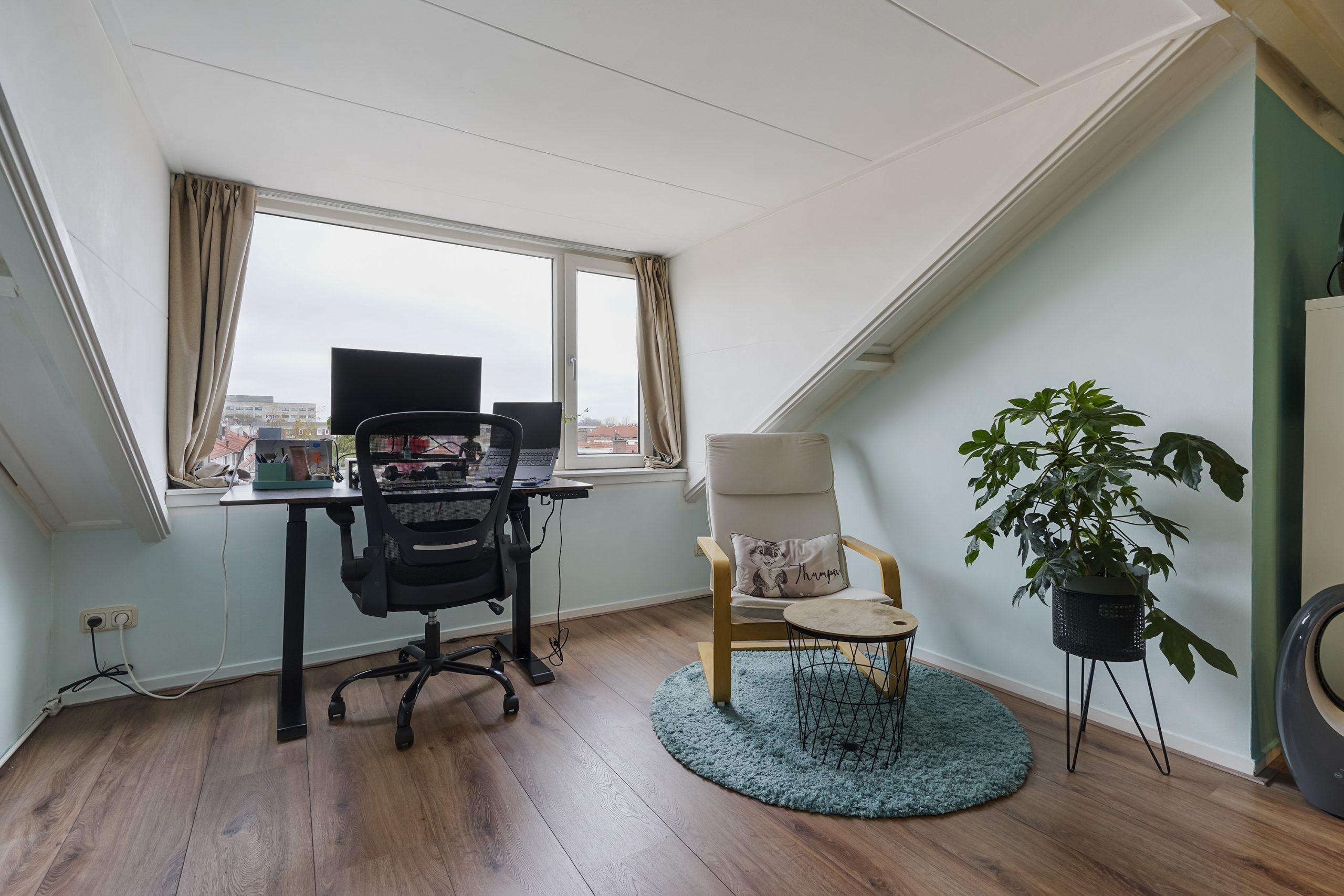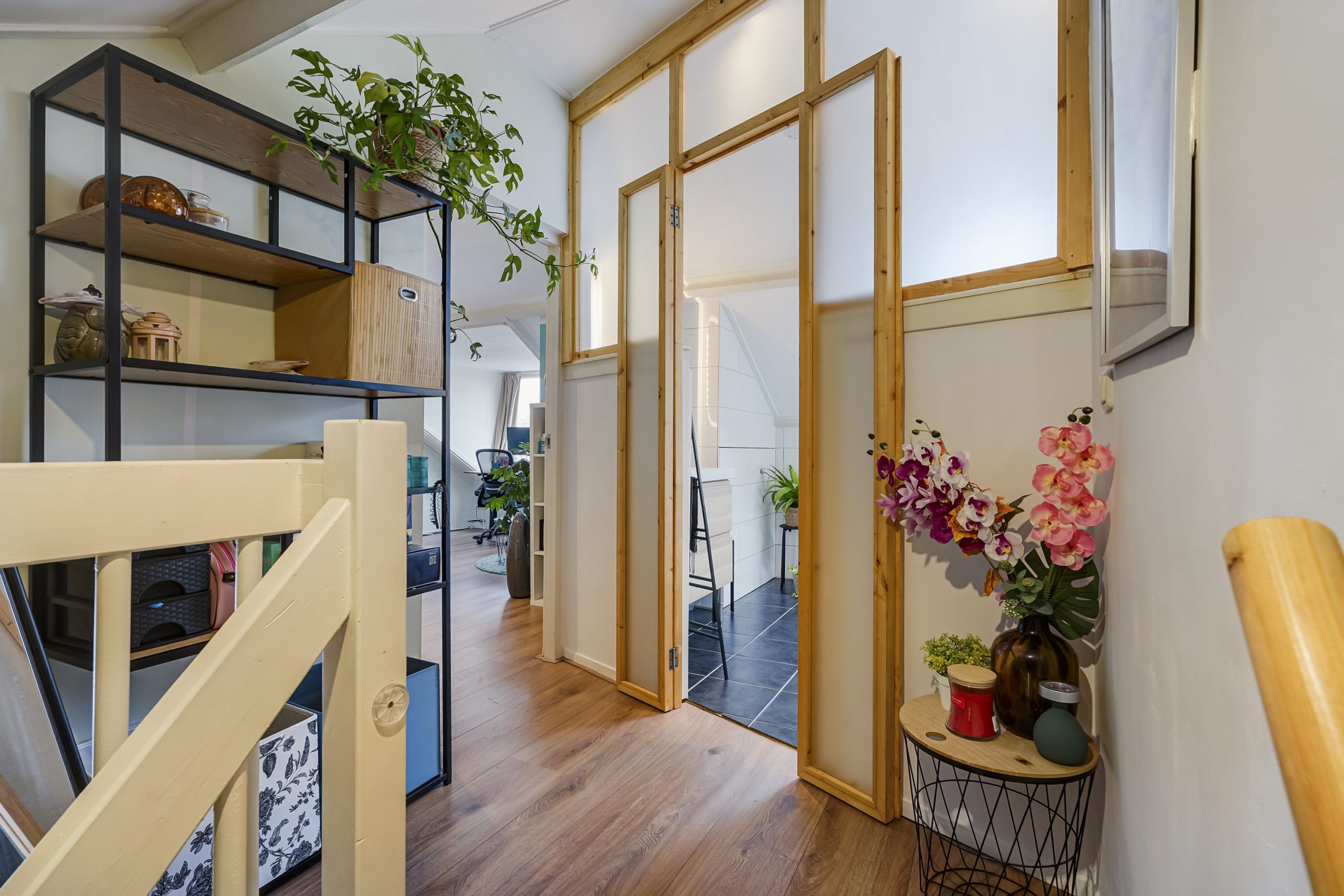 Daarnaast bevindt zich op deze etage nog een extra kamer die gebruikt kan worden als werkkamer, logeerkamer of extra slaapkamer.