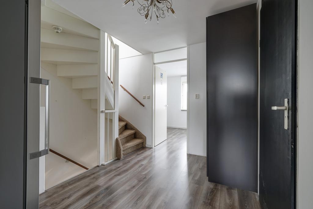 Via de voortuin met hekwerk entree tot de woning. Entree met toegang tot de inpandige berging met meterkast (9 groepen en 2x a.l.s.). De berging is ook van buitenaf toegankelijk voor het eventuele stallen van o.a. fietsen. Modern toilet met een hangcloset en een fonteintje.