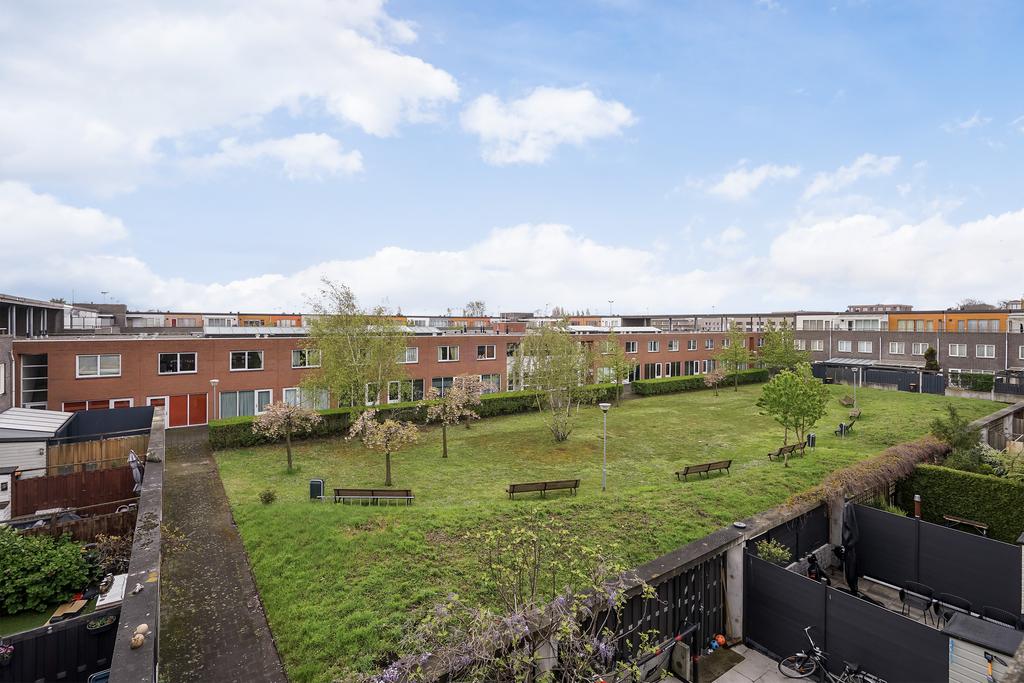 (see Engish below)Een heerlijke riante tussenwoning met voor- en achtertuin, ruime woonkamer met open keuken, 3 slaapkamers en een ruim balkon met zonligging op het Zuidoosten. Het hof heeft een gemeenschappelijke binnentuin. Ideaal voor jonge gezinnen waar kinderen onbezorgd en naar hartelust kunnen buitenspelen.