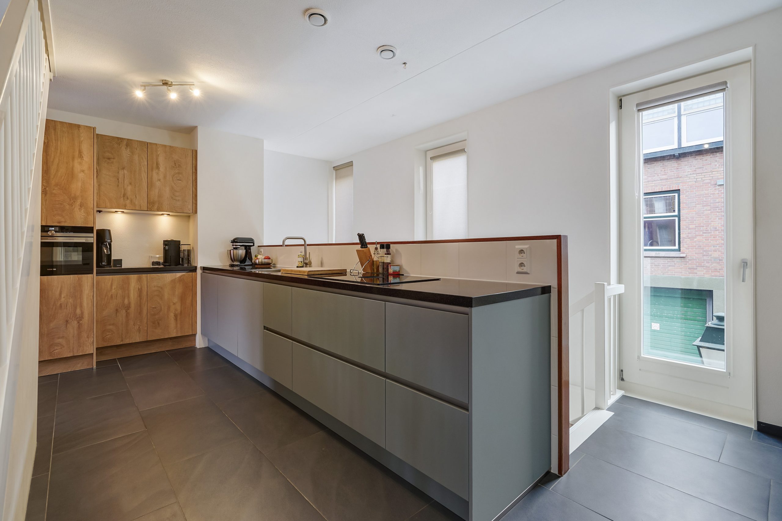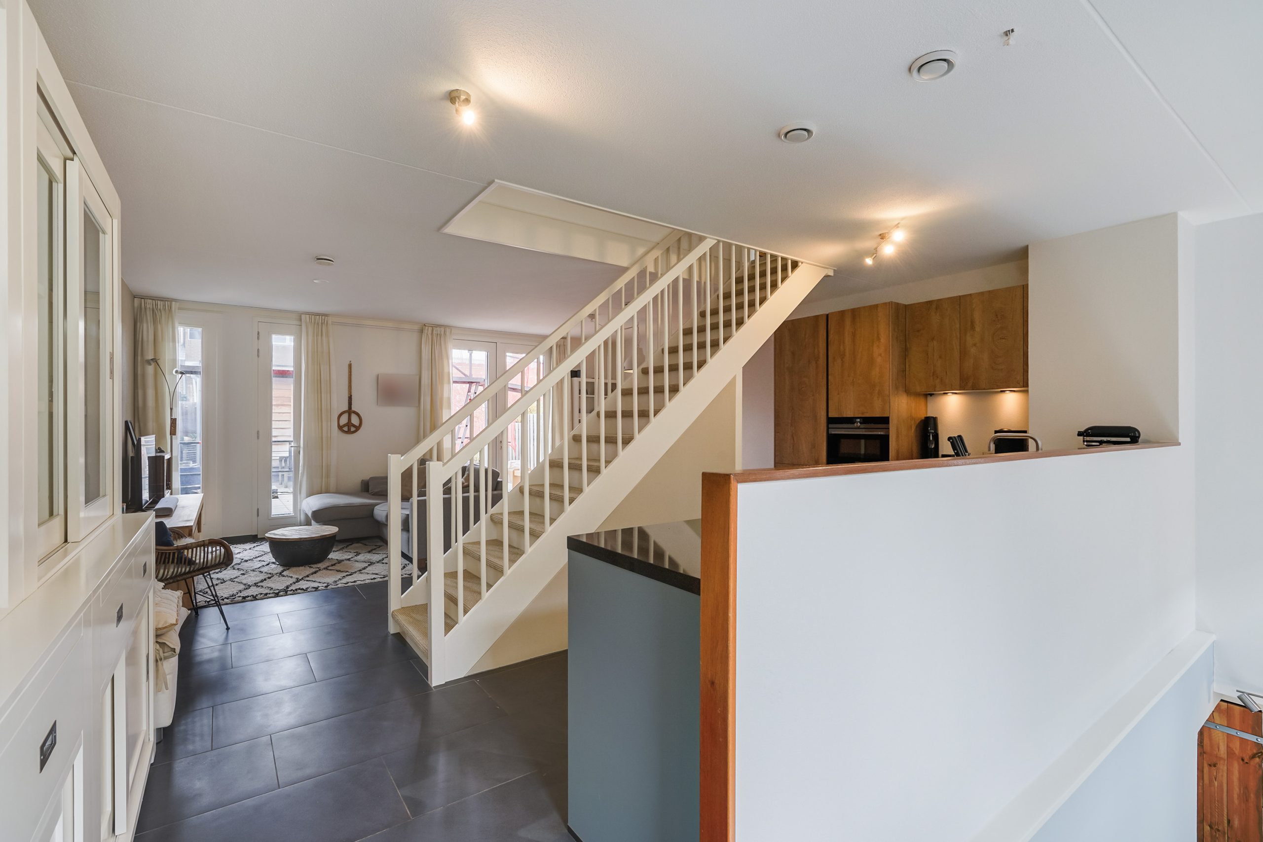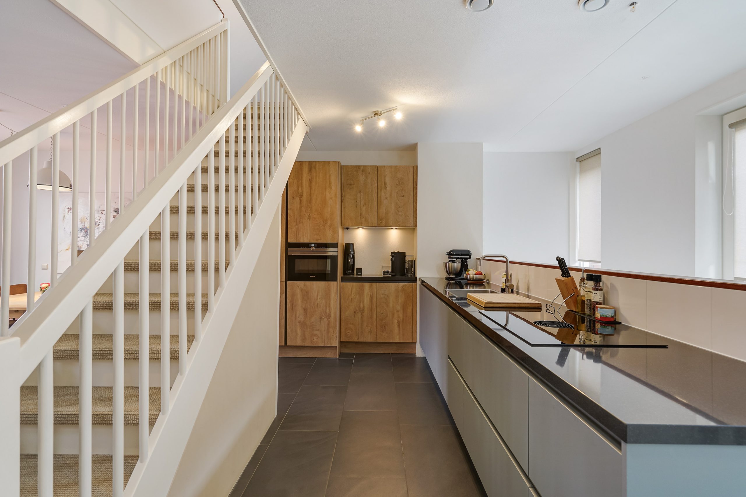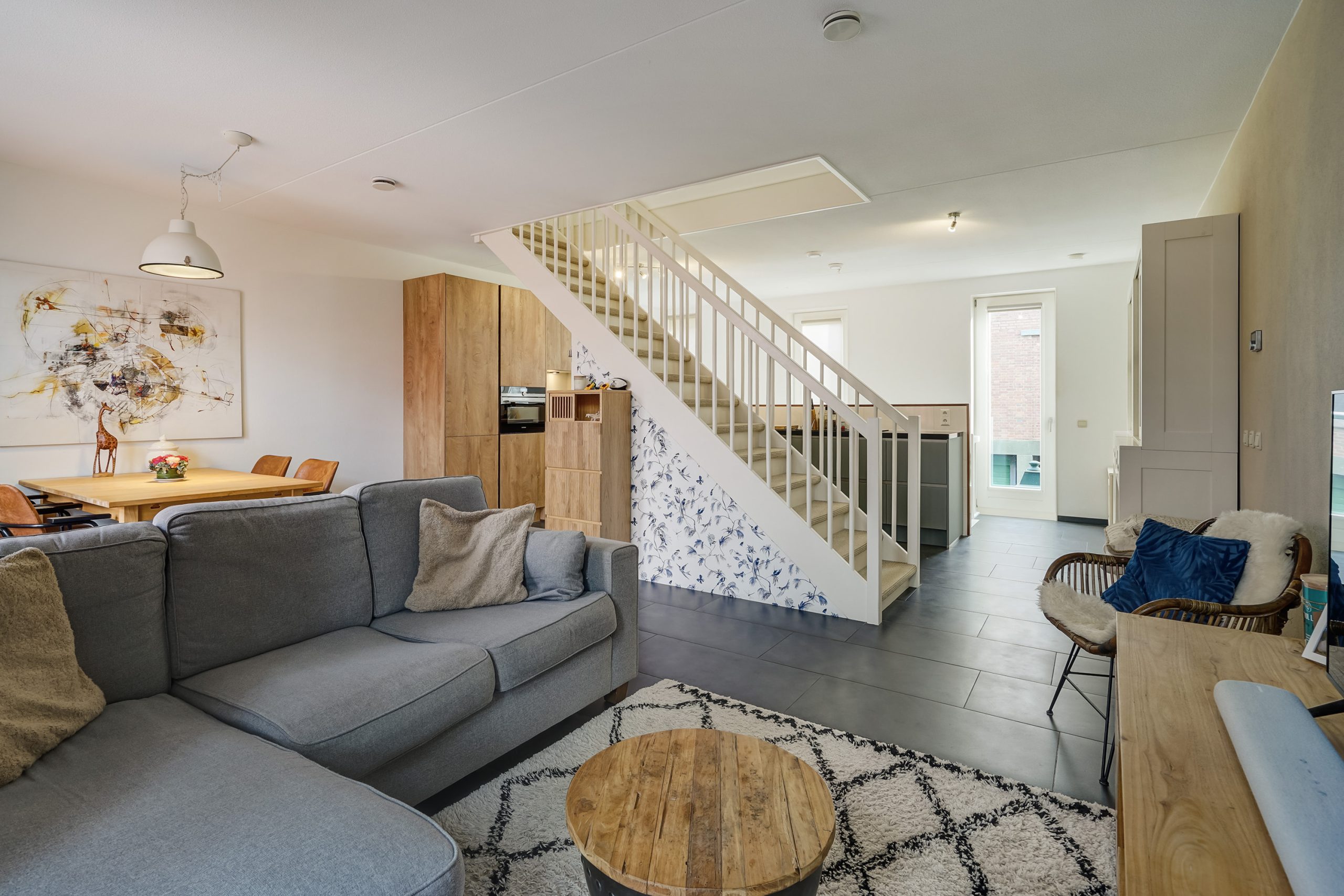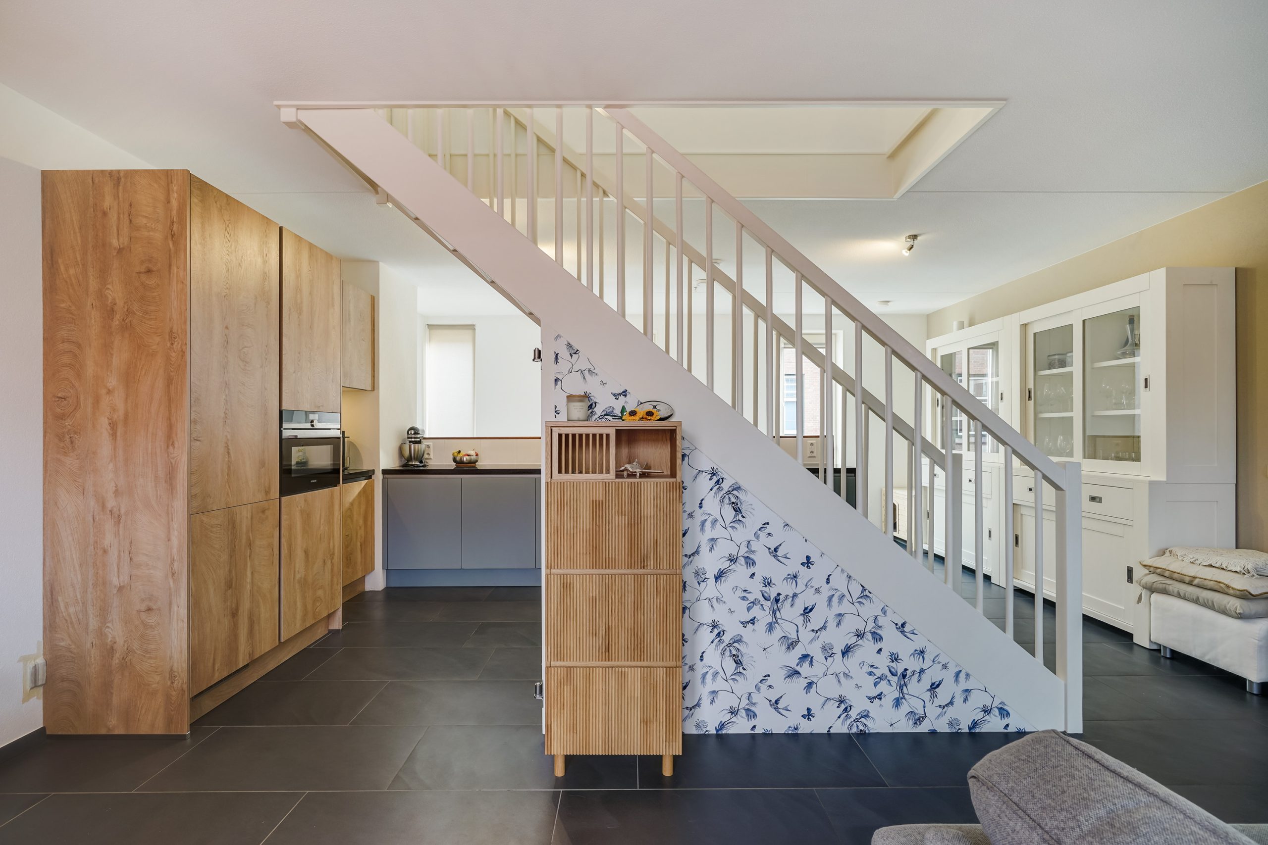 Eerste Verdieping (woonverdieping) - Een ruime en lichte woonkamer met een moderne, open keuken. De gehele verdieping is voorzien van vloerverwarming voor optimaal comfort.