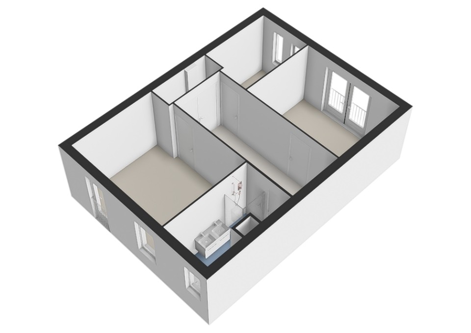 Tweede Verdieping (slaapverdieping) - Via de open trap bereikt u de overloop die toegang biedt tot maar liefst drie volwaardige slaapkamers en een luxe badkamer. De slaapkamers aan de achterzijde beschikken over een Frans balkon met openslaande deuren. De luxe badkamer is uitgerust met een ruime inloopdouche, een dubbel wastafelmeubel en een hangend toilet.