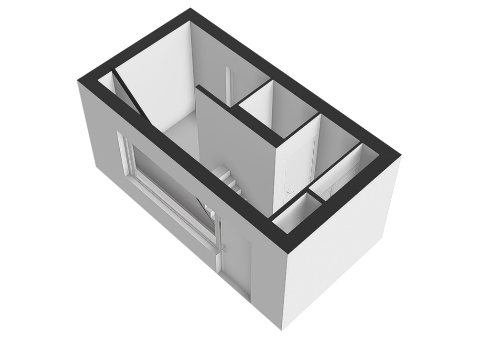 Ground Floor – Entrance at street level leading to a hallway with a meter cupboard and a modern toilet with wash basin. A staircase takes you to the first floor.