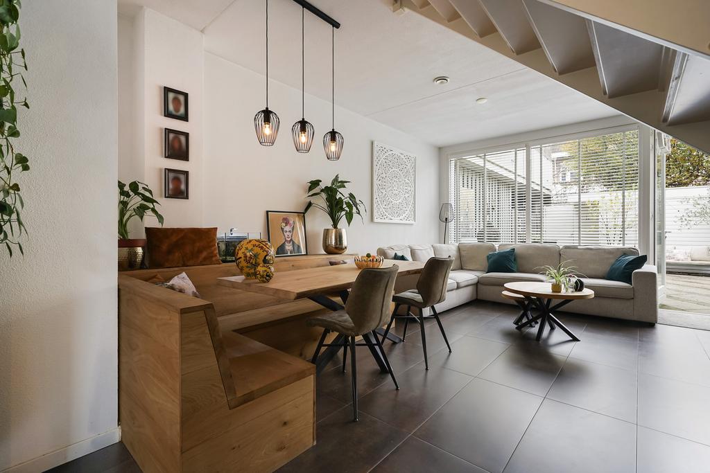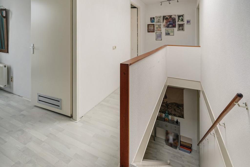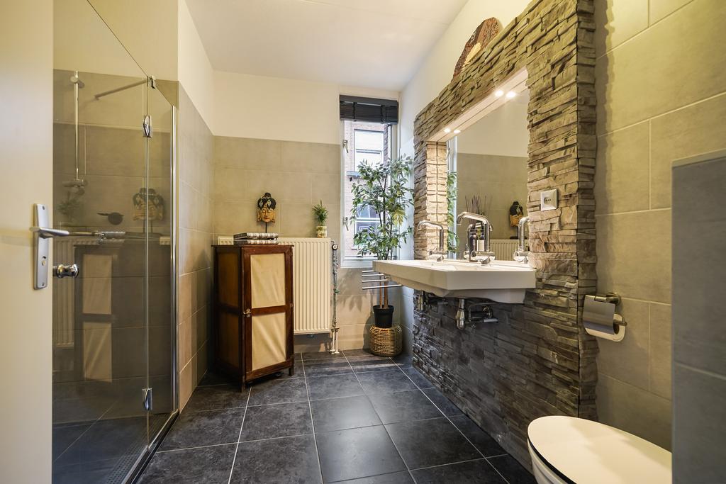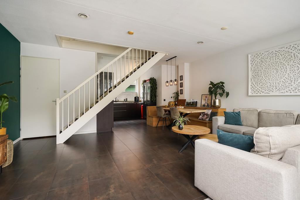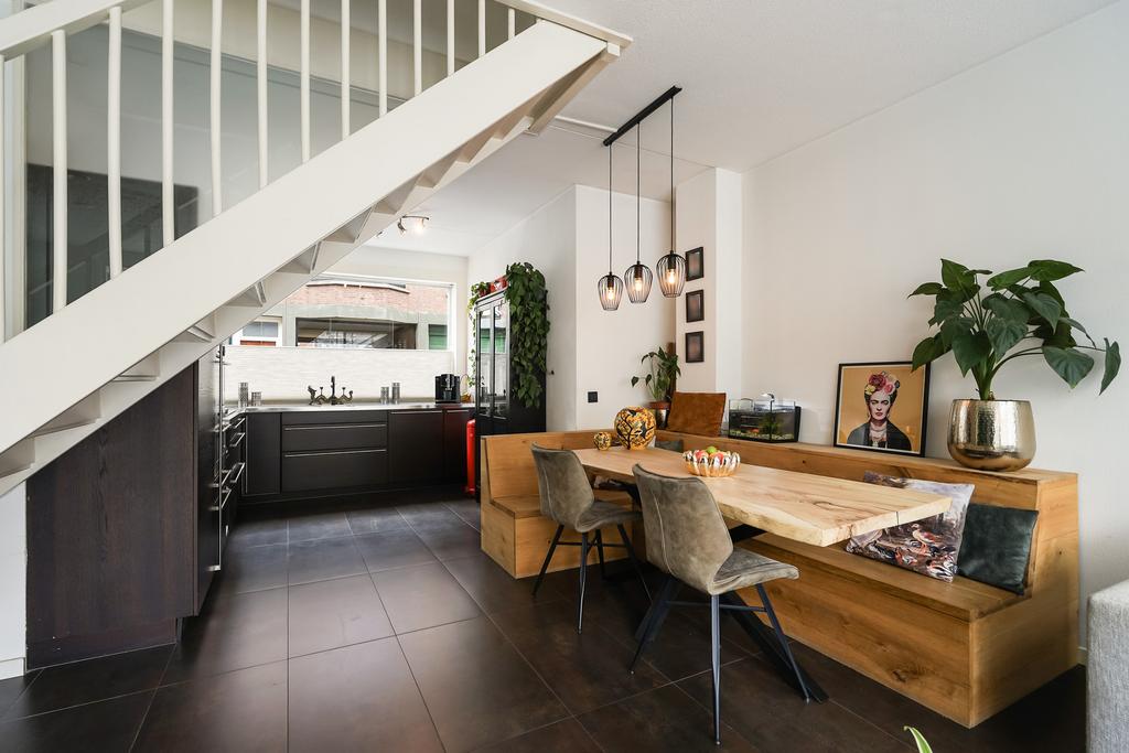 The spacious entrance hall with wardrobe space, meter cupboard and toilet with fountain leads to the spacious living room with open kitchen. The modern kitchen is equipped with various built-in appliances, including an oven and steam oven, refrigerator and dishwasher. The entire ground floor has underfloor heating! The double doors in the living room give you access to the well-kept backyard with a back entrance and detached wooden shed. Through the garden you can also reach the indoor garage with no fewer than two private parking spaces via a lockable door.