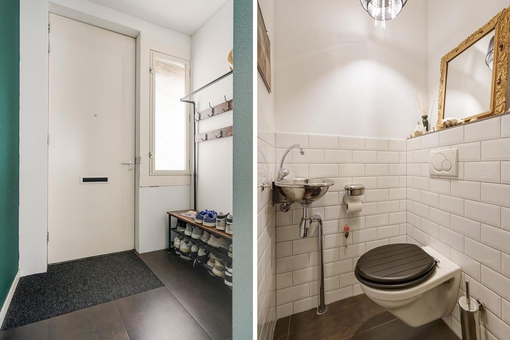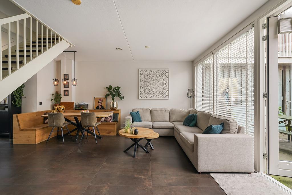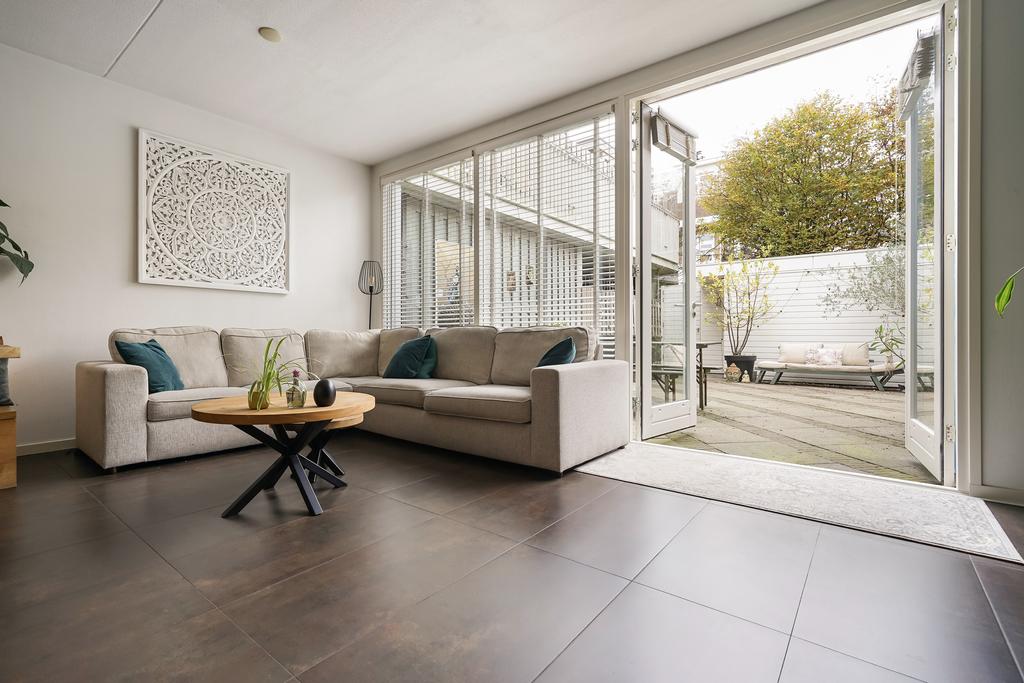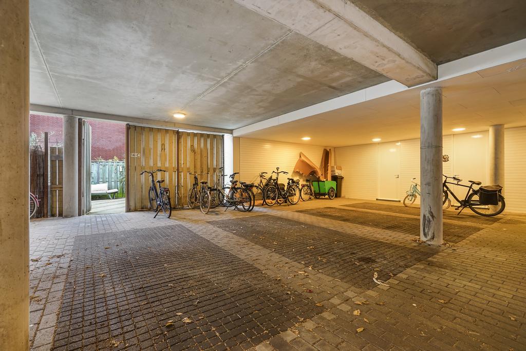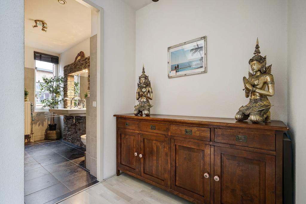 The spacious entrance hall with wardrobe space, meter cupboard and toilet with fountain leads to the spacious living room with open kitchen. The modern kitchen is equipped with various built-in appliances, including an oven and steam oven, refrigerator and dishwasher. The entire ground floor has underfloor heating! The double doors in the living room give you access to the well-kept backyard with a back entrance and detached wooden shed. Through the garden you can also reach the indoor garage with no fewer than two private parking spaces via a lockable door.