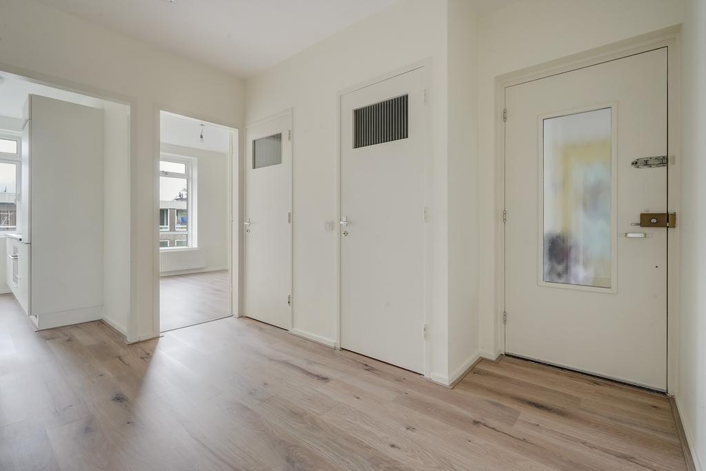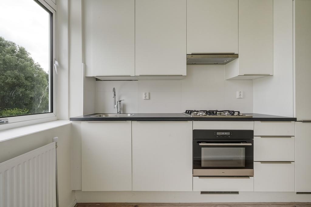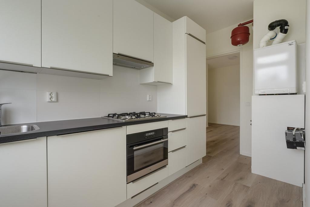 Gesloten entree met bellenplateau. Middels trap bereikt u de woning op de derde woonlaag. Via de ruime overloop zijn alle kamers te bereiken. De separate toiletruimte heeft een hangtoilet, fontein en strakke betegeling. Naast de toiletruimte bevindt zich de badkamer met inloopdouche en wastafel. Aan de achterzijde van de woning bevinden zich 2 ruime slaapkamers. Eén van de slaapkamers is voorzien van een loggia waar tevens een mogelijkheid om de wasmachine te plaatsen. De keuken is voorzien van diverse inbouwapparatuur als zijnde: 4 pits inductie kookplaat, afzuigkap, oven, koel- en vriescombinatie en voldoende opbergruimte. Ook bevindt zich in deze ruimte de CV-ketel Intergas kombi kompakt uit 2021. Aan de voorzijde is de lichte woonkamer gelegen waar aangrenzend de derde slaapkamer. Vanuit zowel de woonkamer als slaapkamer is het zonnige balkon te bereiken. In de onderbouw is er ook nog een bijhorende externe bergruimte.