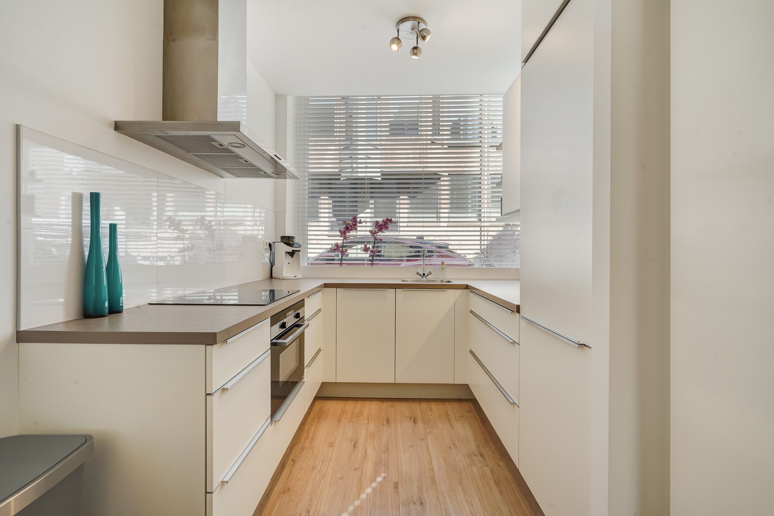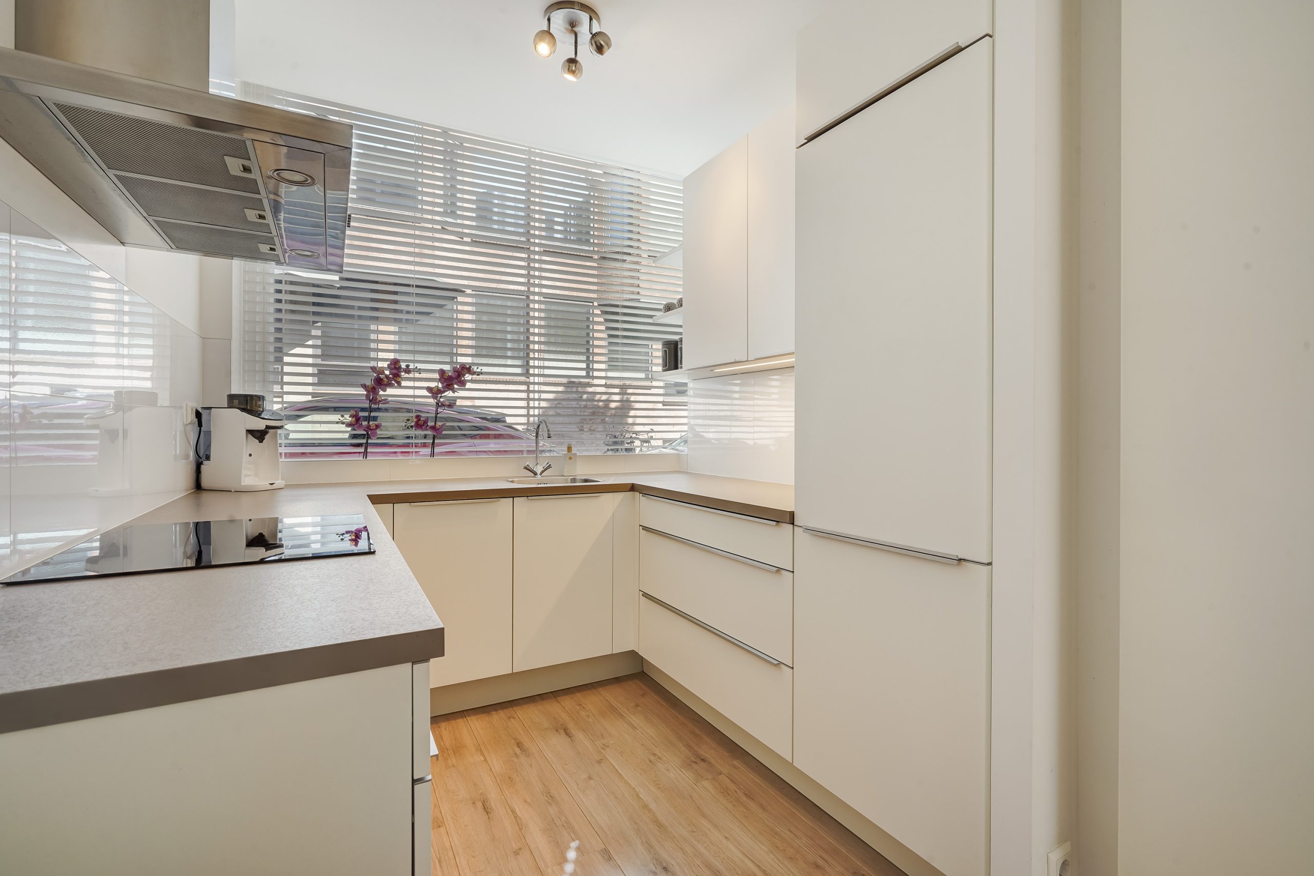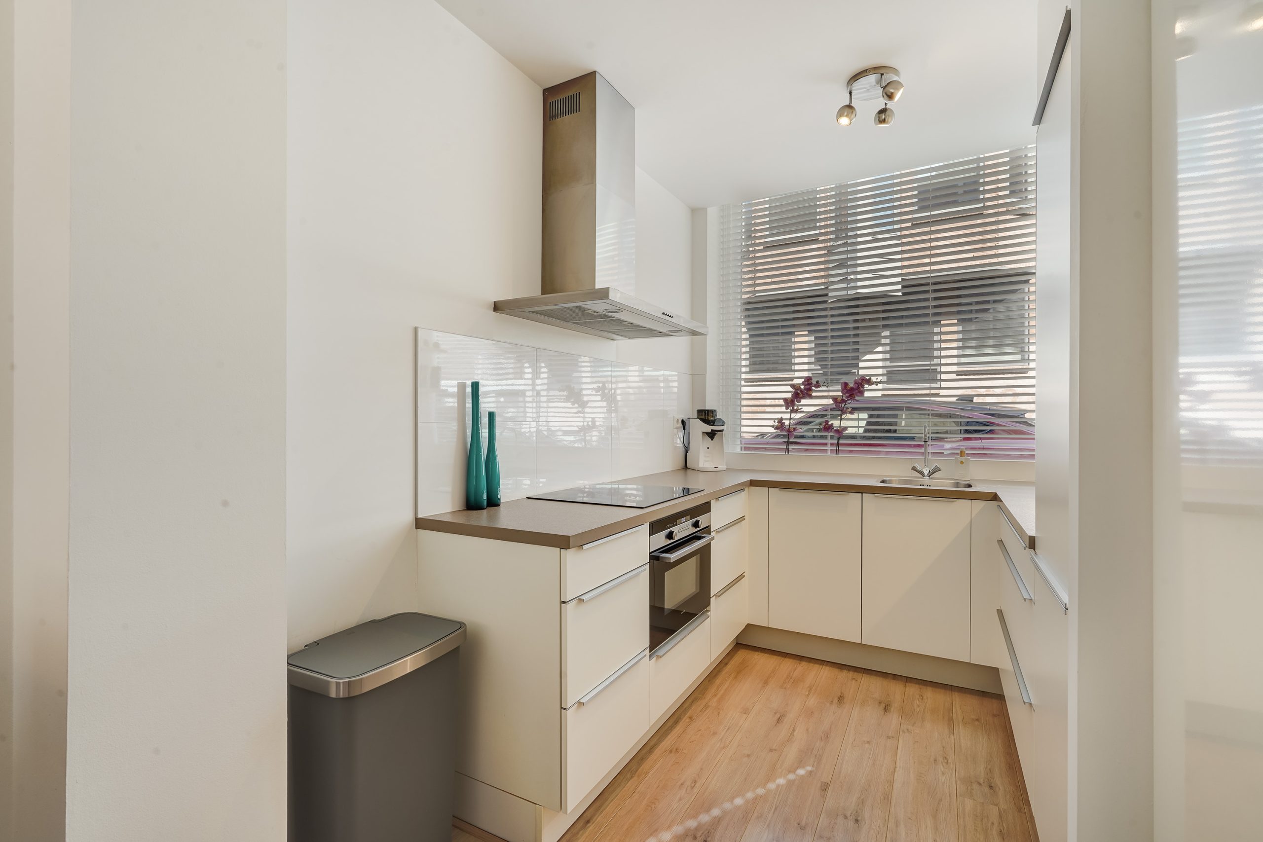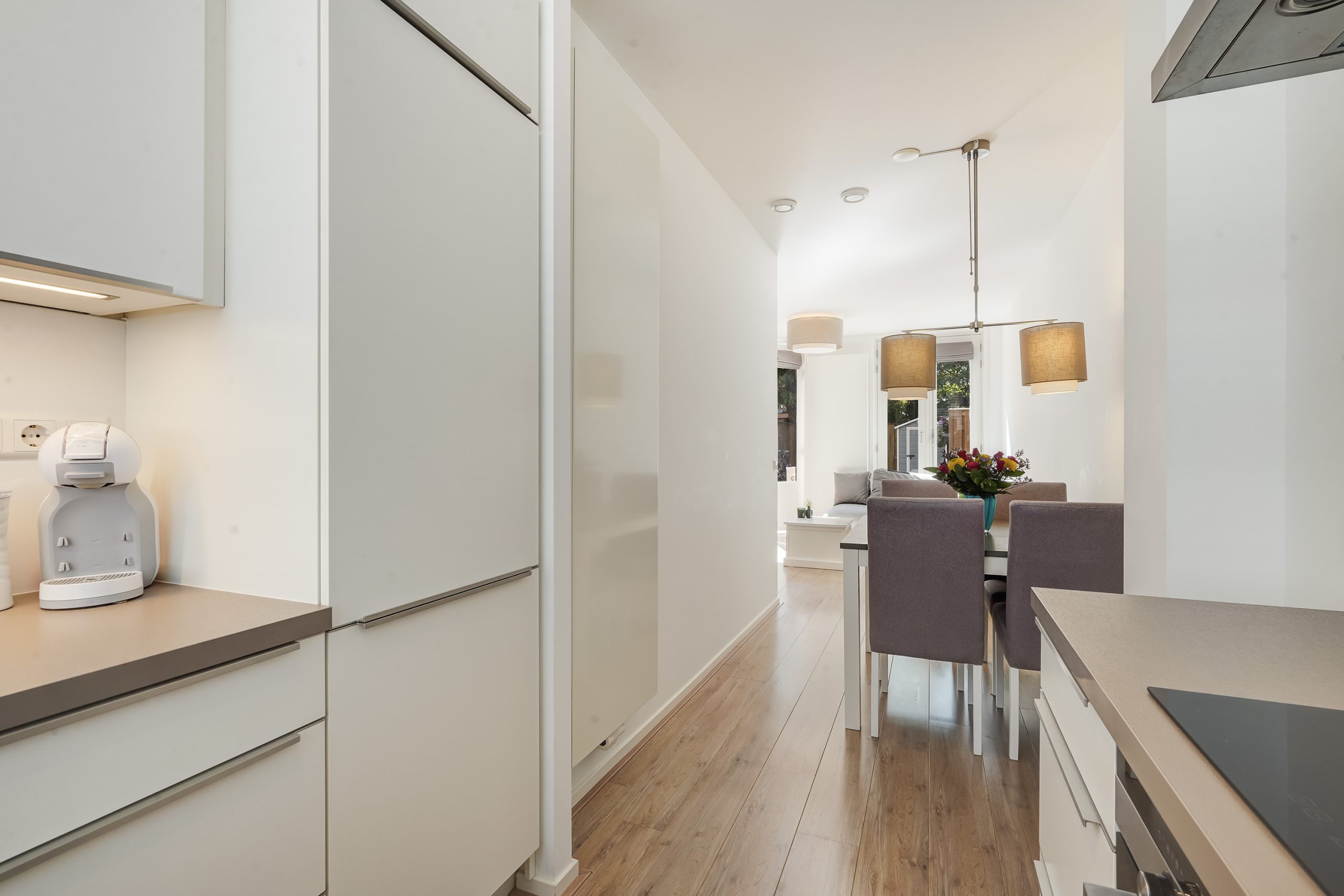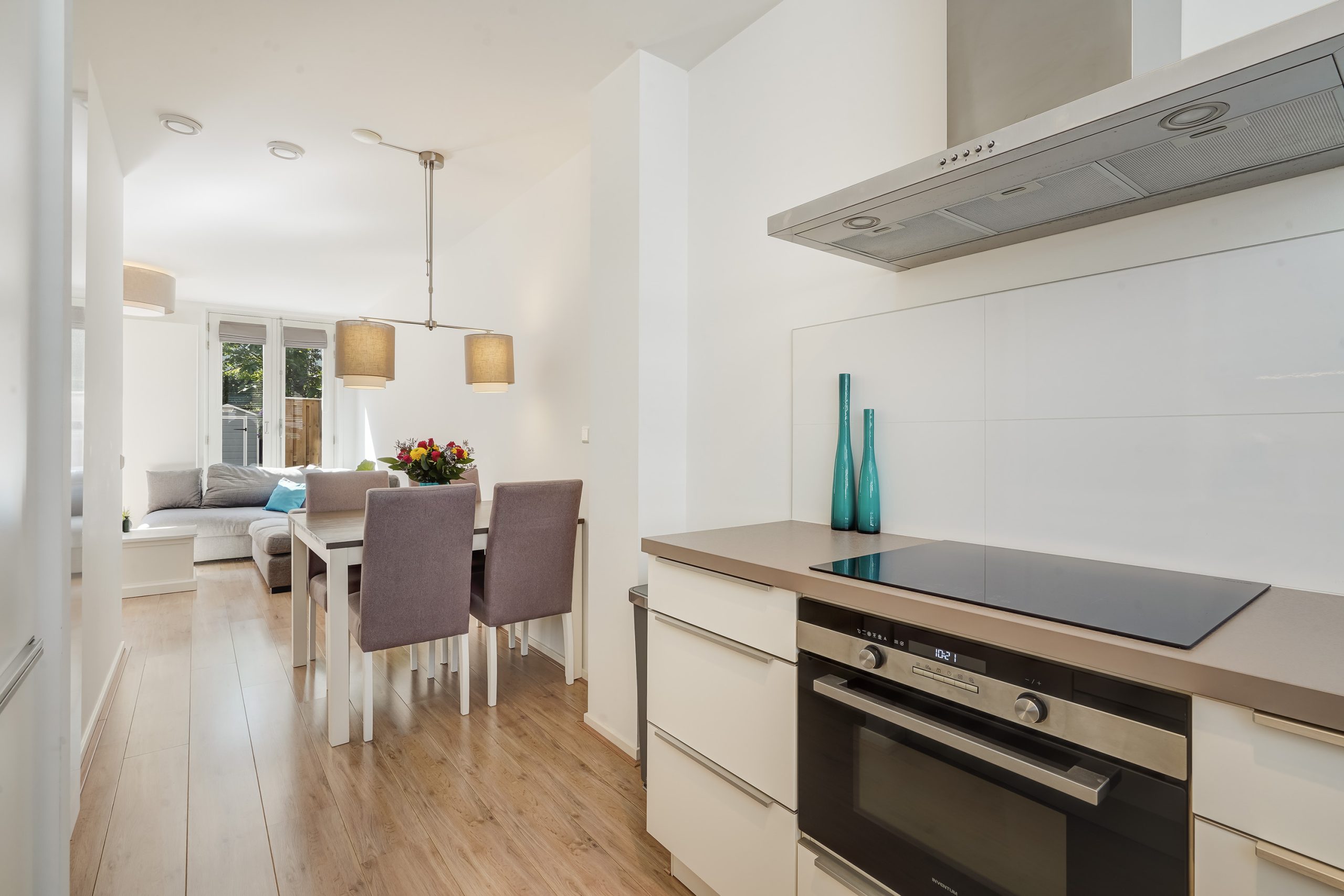 Via de entree met meterkast en separate toiletruimte betreedt u de lichte woonkamer met een moderne, halfopen keuken. De keuken is uitgerust met diverse inbouwapparatuur, waaronder een combi-oven, vaatwasser, inductiekookplaat met afzuigkap en een koel-vriescombinatie. Vanuit de woonkamer is er toegang tot de zeer ruime en zonnige achtertuin, gelegen op het zuidoosten. In de tuin bevindt zich tevens een praktische berging.