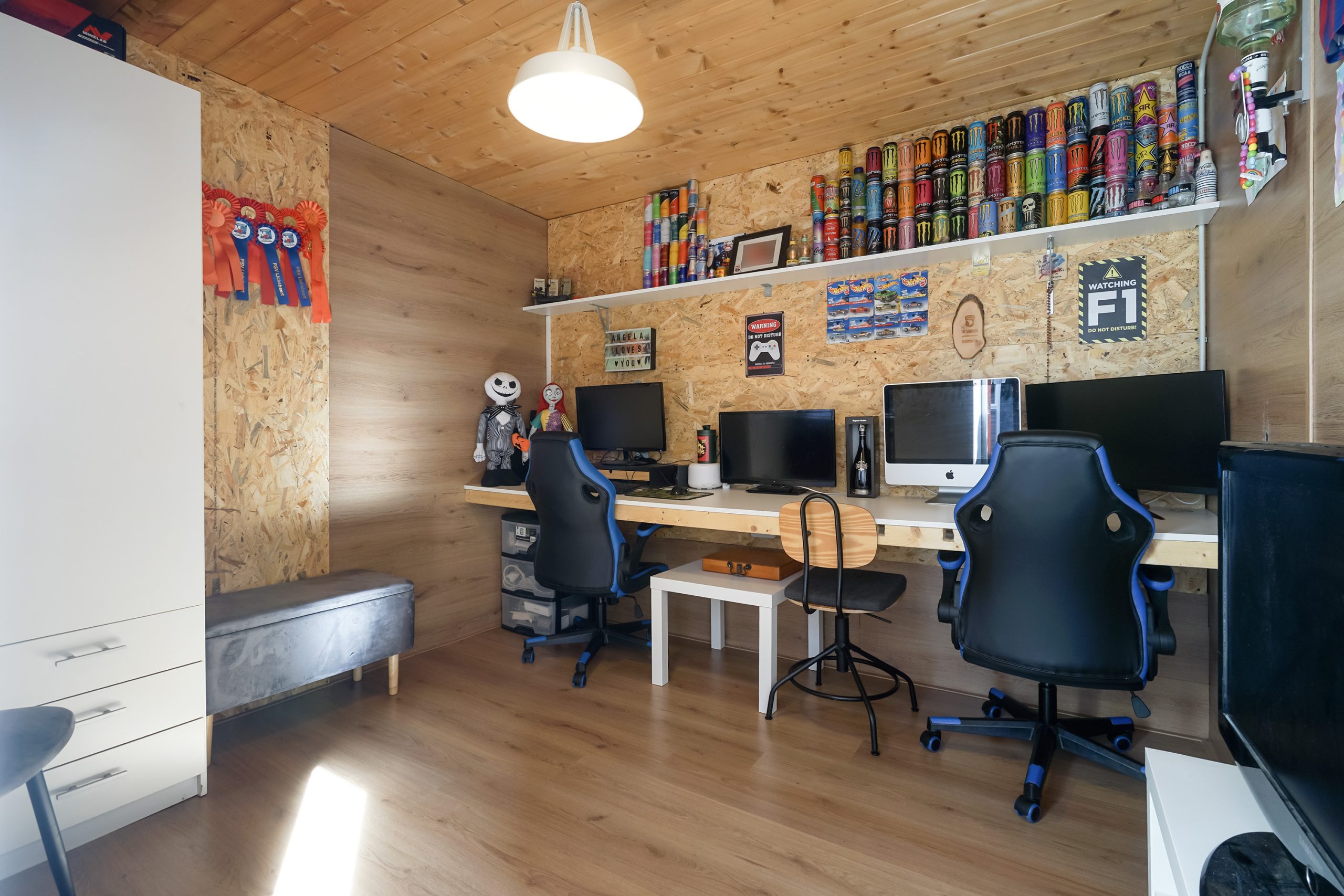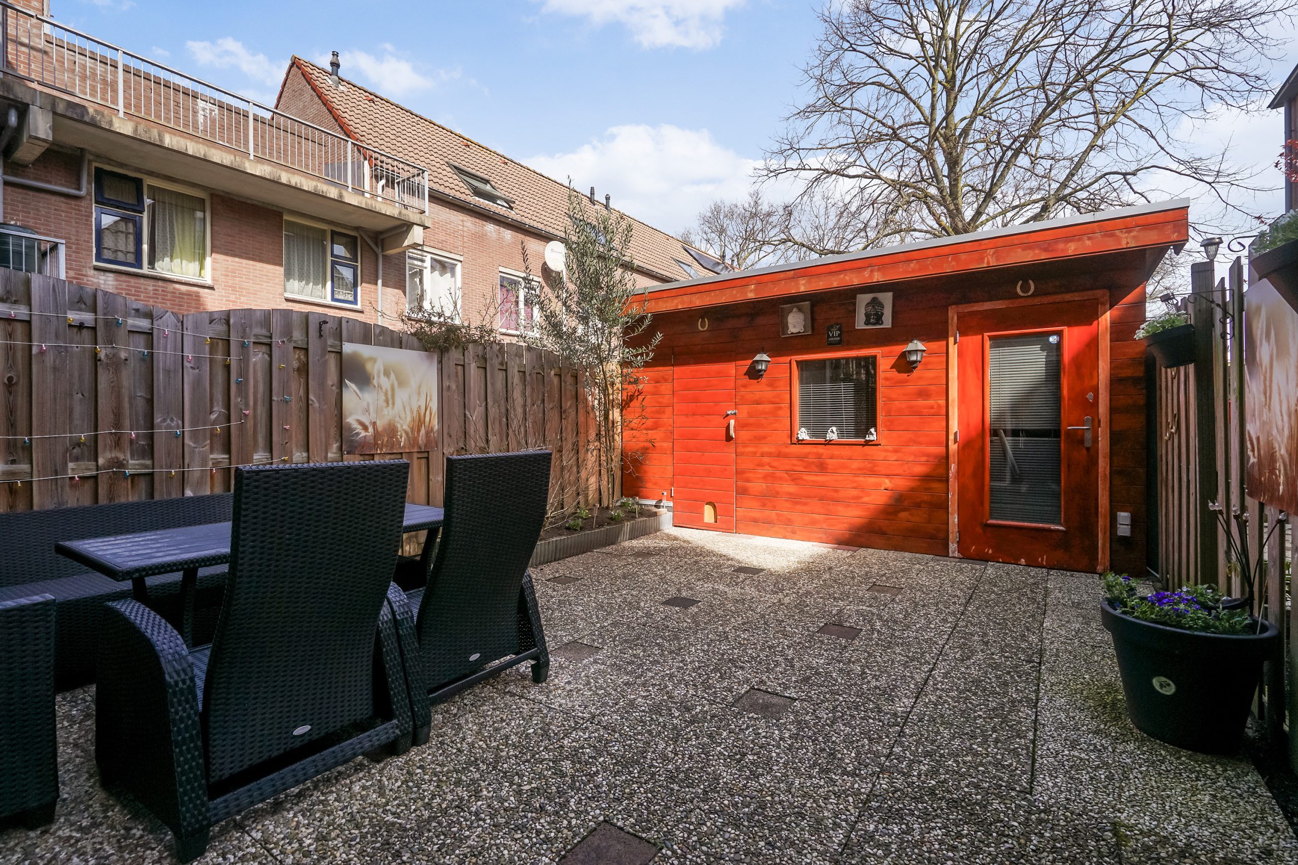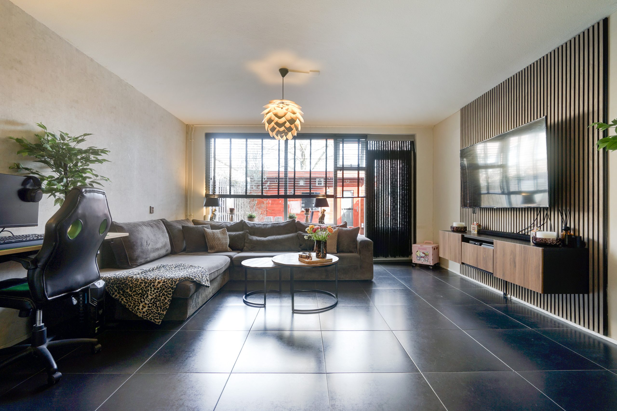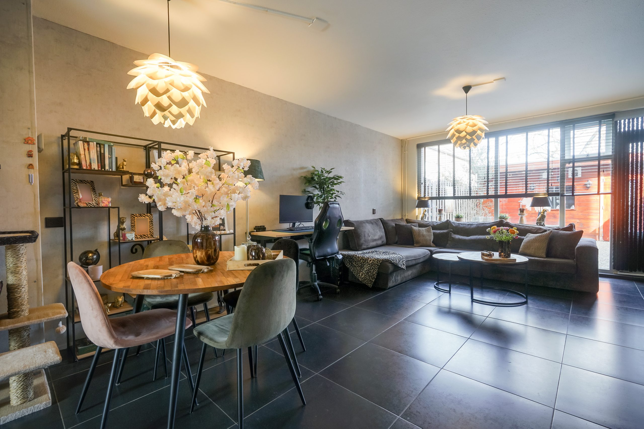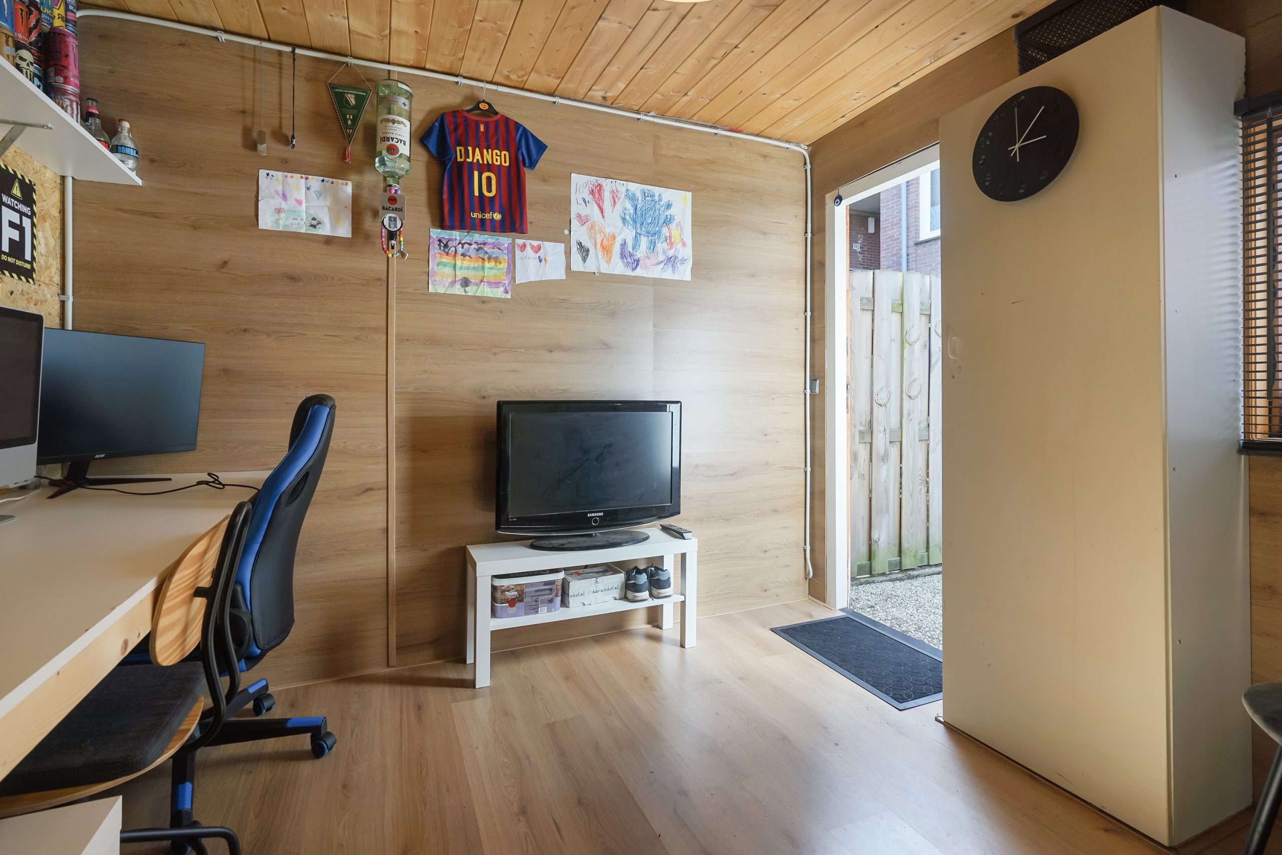 Upon entering, you step into the hallway with a meter cupboard, toilet, and staircase leading to the first floor. The open kitchen is located at the front of the property. The spacious living room at the rear is pleasantly bright and provides direct access to the northeast-facing backyard. The garden features a rear entrance and a garden shed, ideal for storing (garden) items. This space is currently set up as a comfortable game room. In addition, there is a separate storage room in the building, for example for bicycles.
