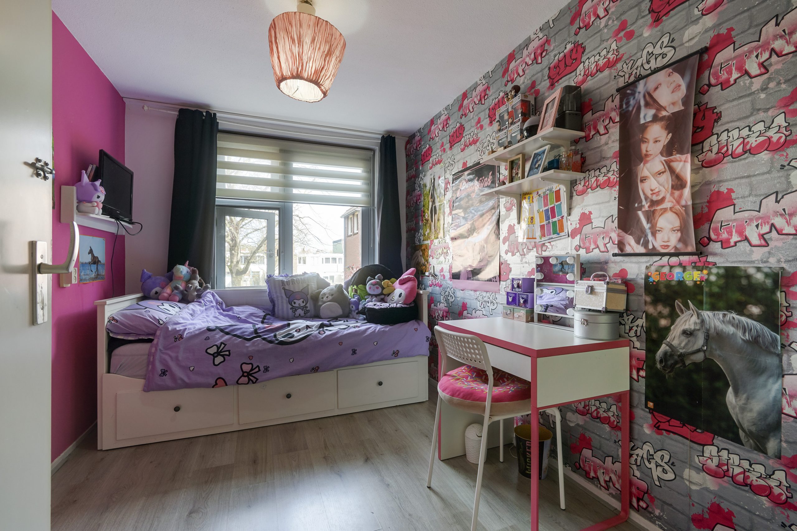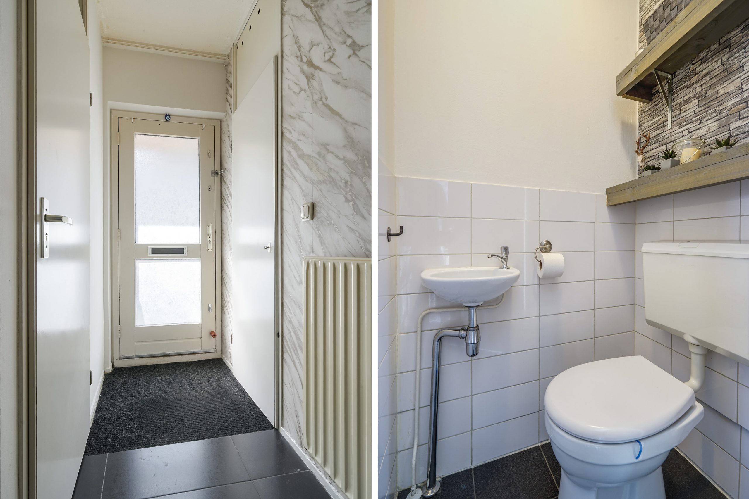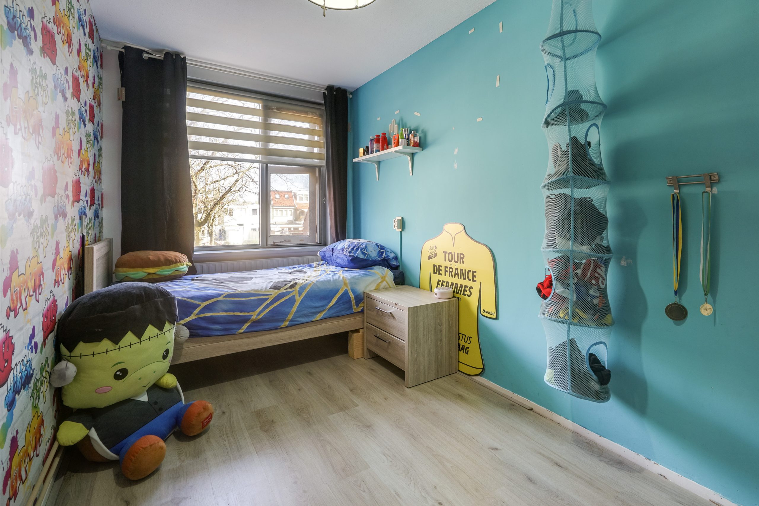 Op de eerste verdieping komt u op de overloop die toegang geeft tot drie slaapkamers. De ruime hoofdslaapkamer is gelegen aan de voorzijde van de woning, terwijl de twee overige slaapkamers zich aan de achterzijde bevinden. De badkamer is functioneel ingericht en voorzien van een douche, wastafel, toilet en een aansluiting voor de wasmachine.