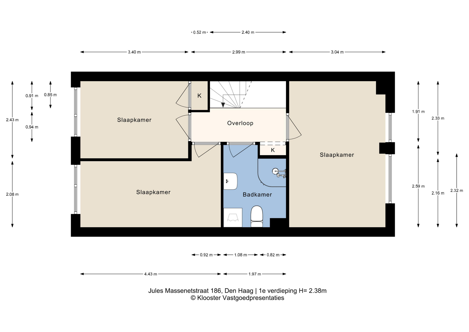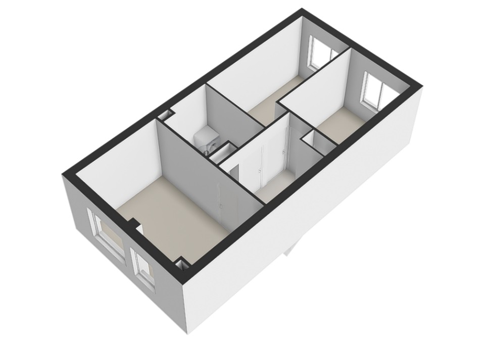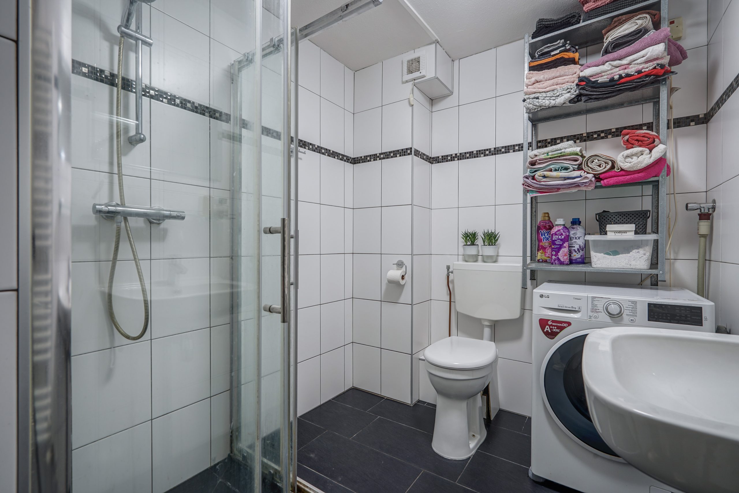 Op de eerste verdieping komt u op de overloop die toegang geeft tot drie slaapkamers. De ruime hoofdslaapkamer is gelegen aan de voorzijde van de woning, terwijl de twee overige slaapkamers zich aan de achterzijde bevinden. De badkamer is functioneel ingericht en voorzien van een douche, wastafel, toilet en een aansluiting voor de wasmachine.