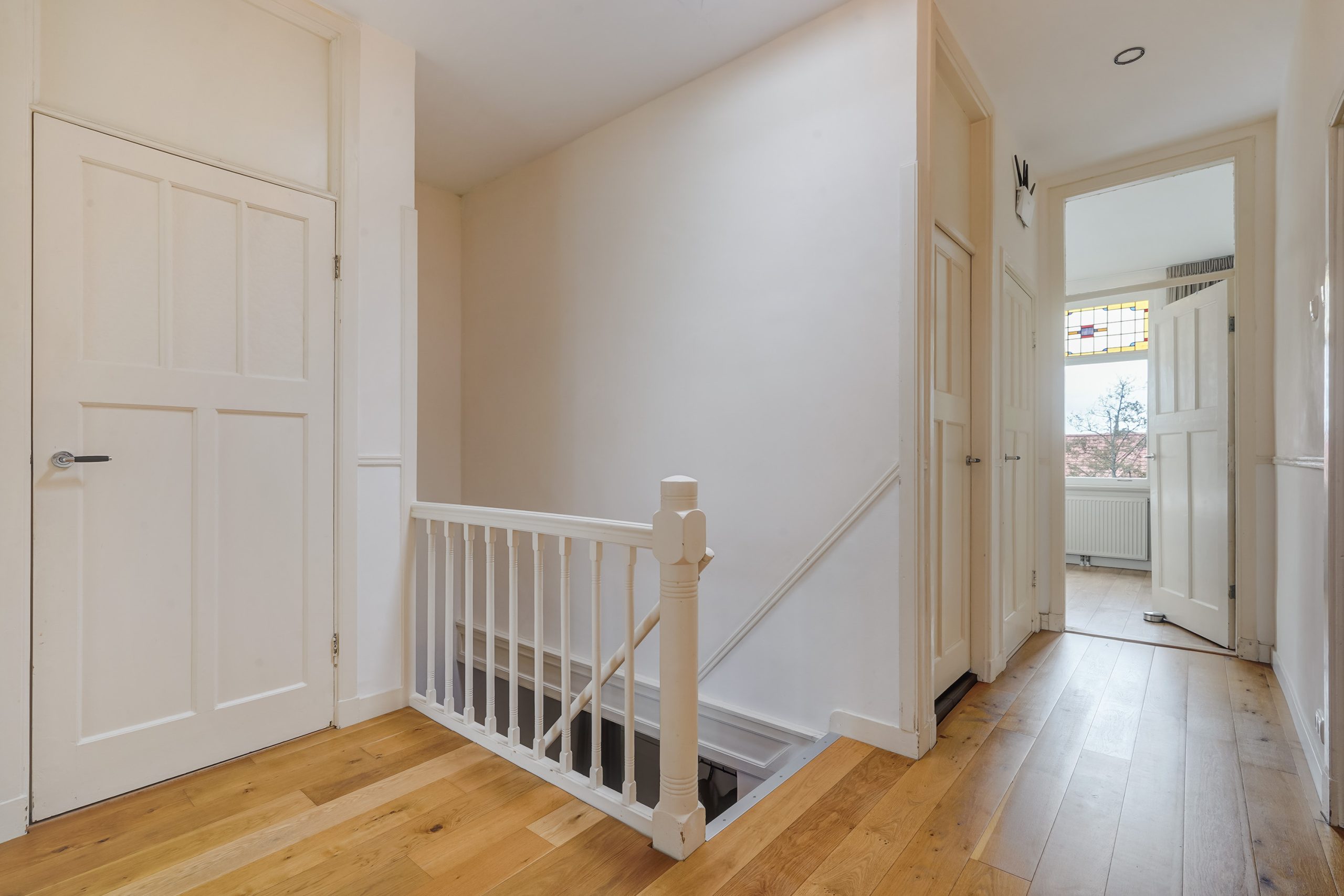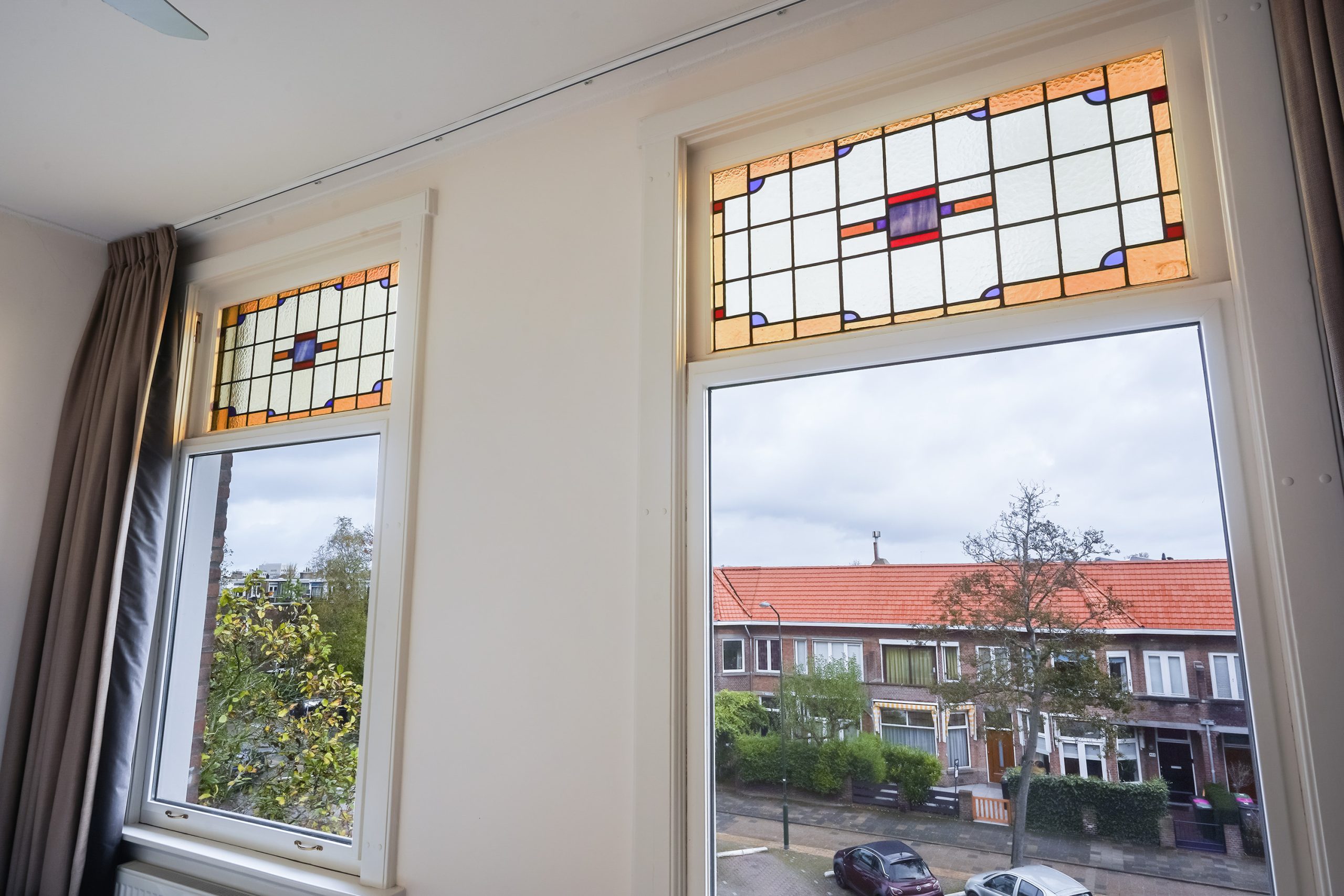 • Window frames: front wooden frames with HR++ glass and stained glass with secondary glazing; rear PVC window frames with double HR++ glass