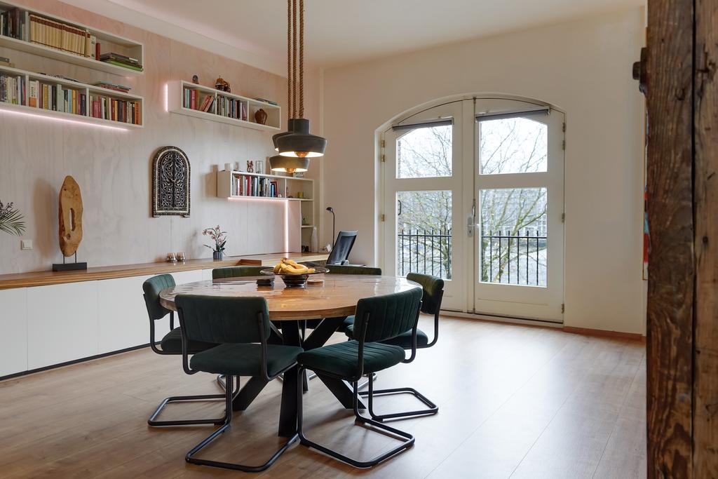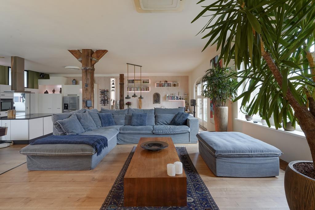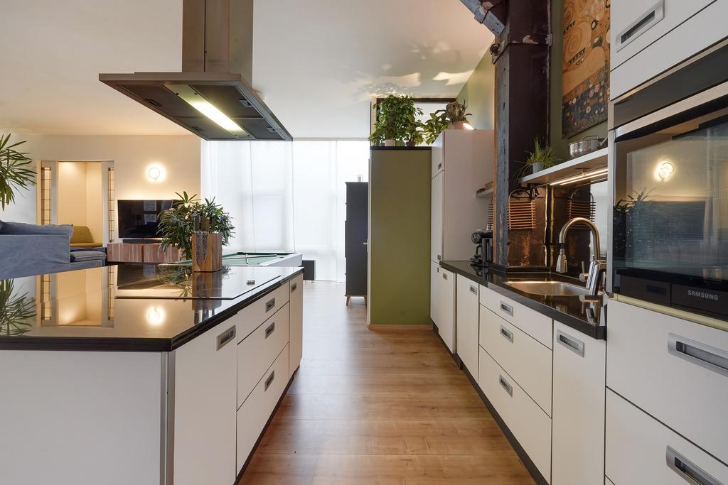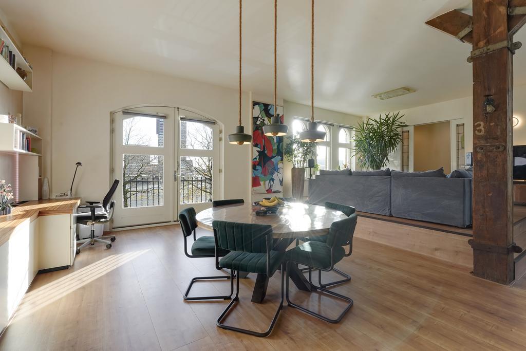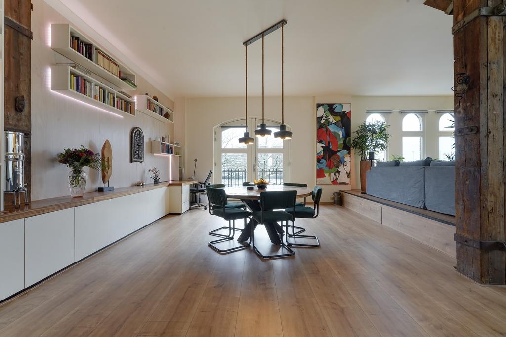 Dit unieke appartement is gevestigd achter de historische gevel van de voormalige Leerlooierij, onderdeel van het oude pakhuis van N.V. Kaufmann’s Huidenhandel. In 2001 is het pand omgetoverd tot een stijlvol en luxe appartementencomplex.