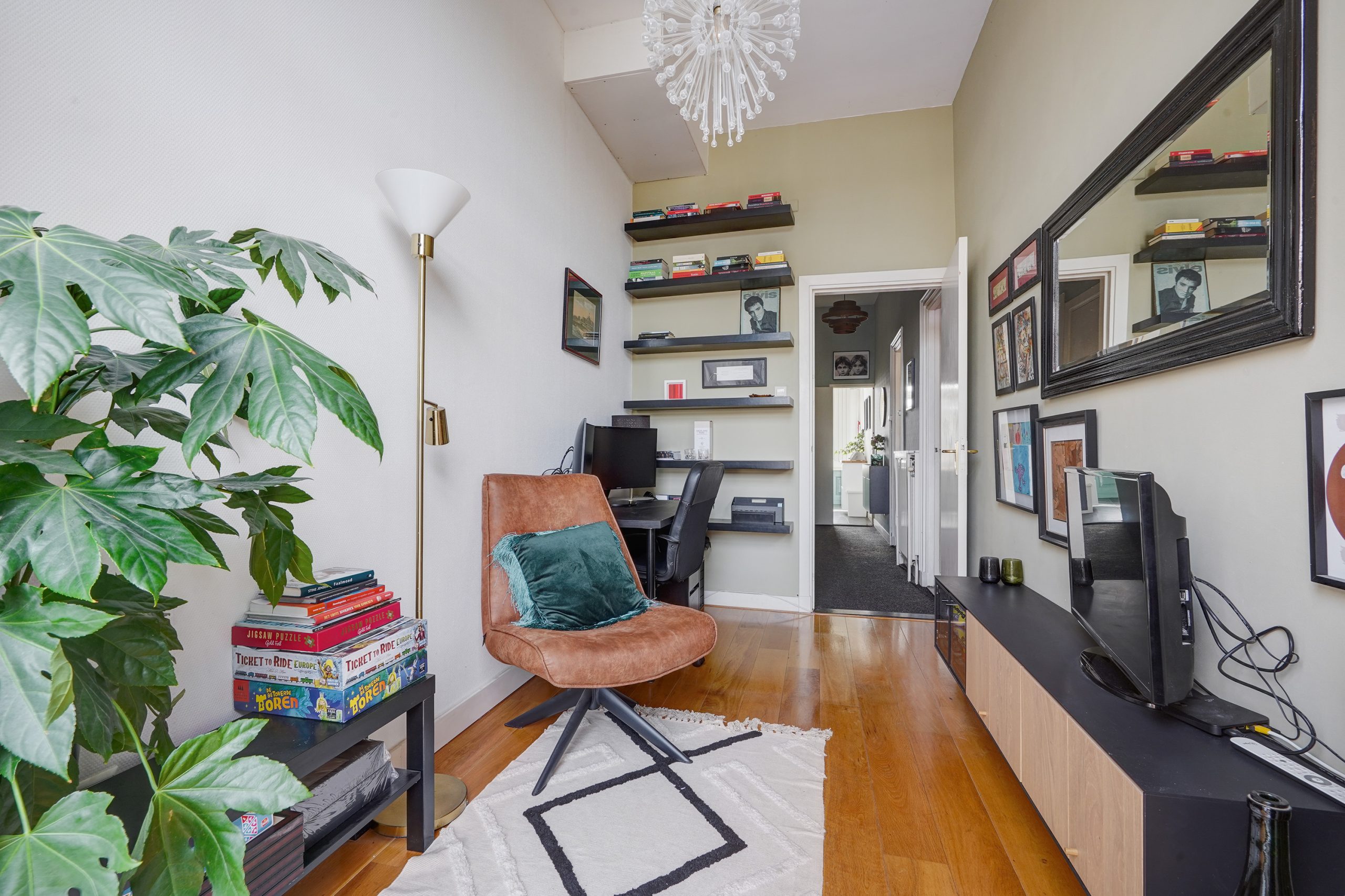 Aan de voorzijde bevindt zich de moderne keuken voorzien van diverse inbouwapparatuur en een inductiekookplaat. Aan de achterzijde ligt een studeer- of logeerkamer met directe toegang tot het zonnige dakterras. Door de gunstige ligging en de hoogte van het terras is dit een heerlijke plek om van de zon te genieten.