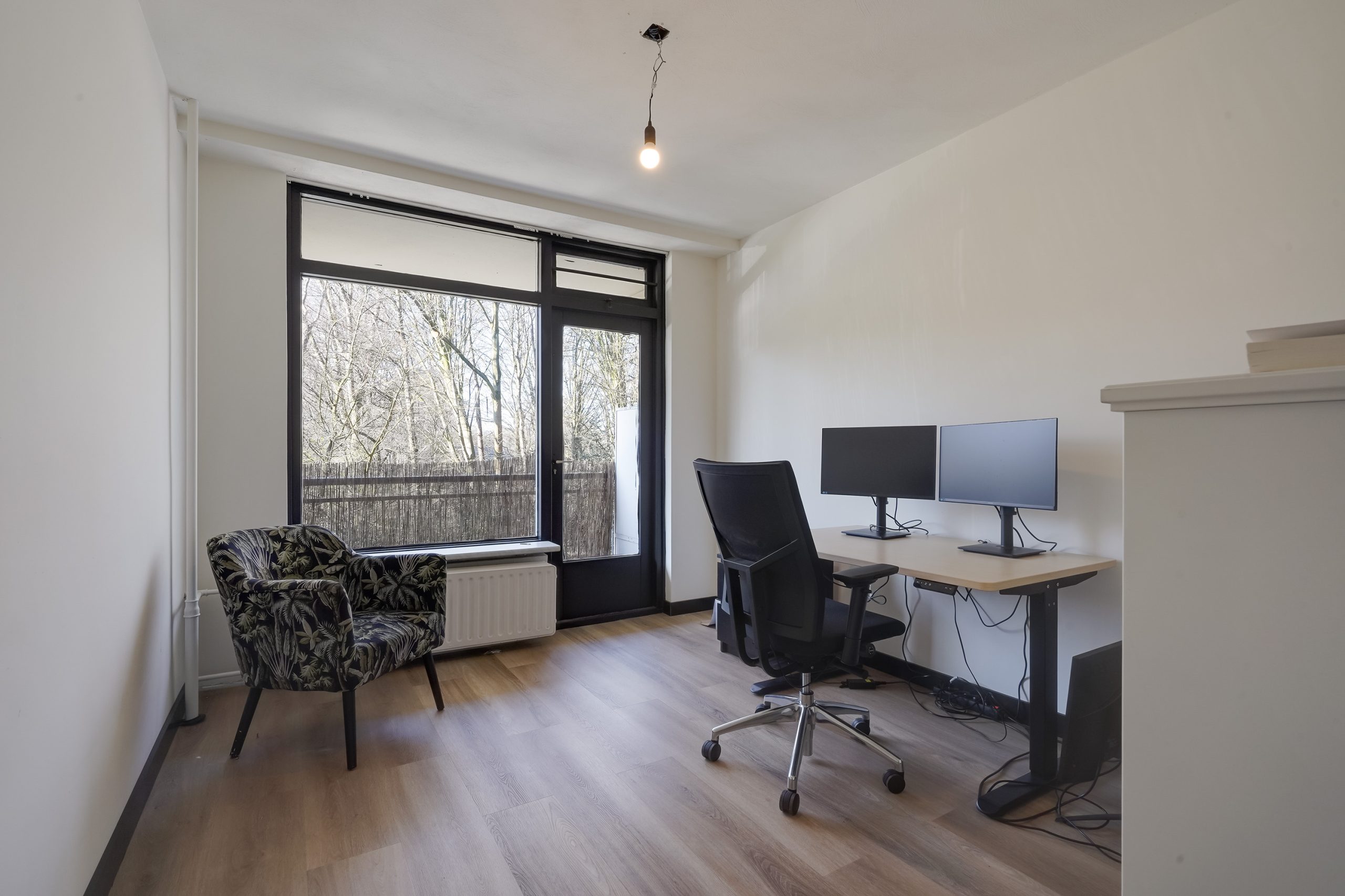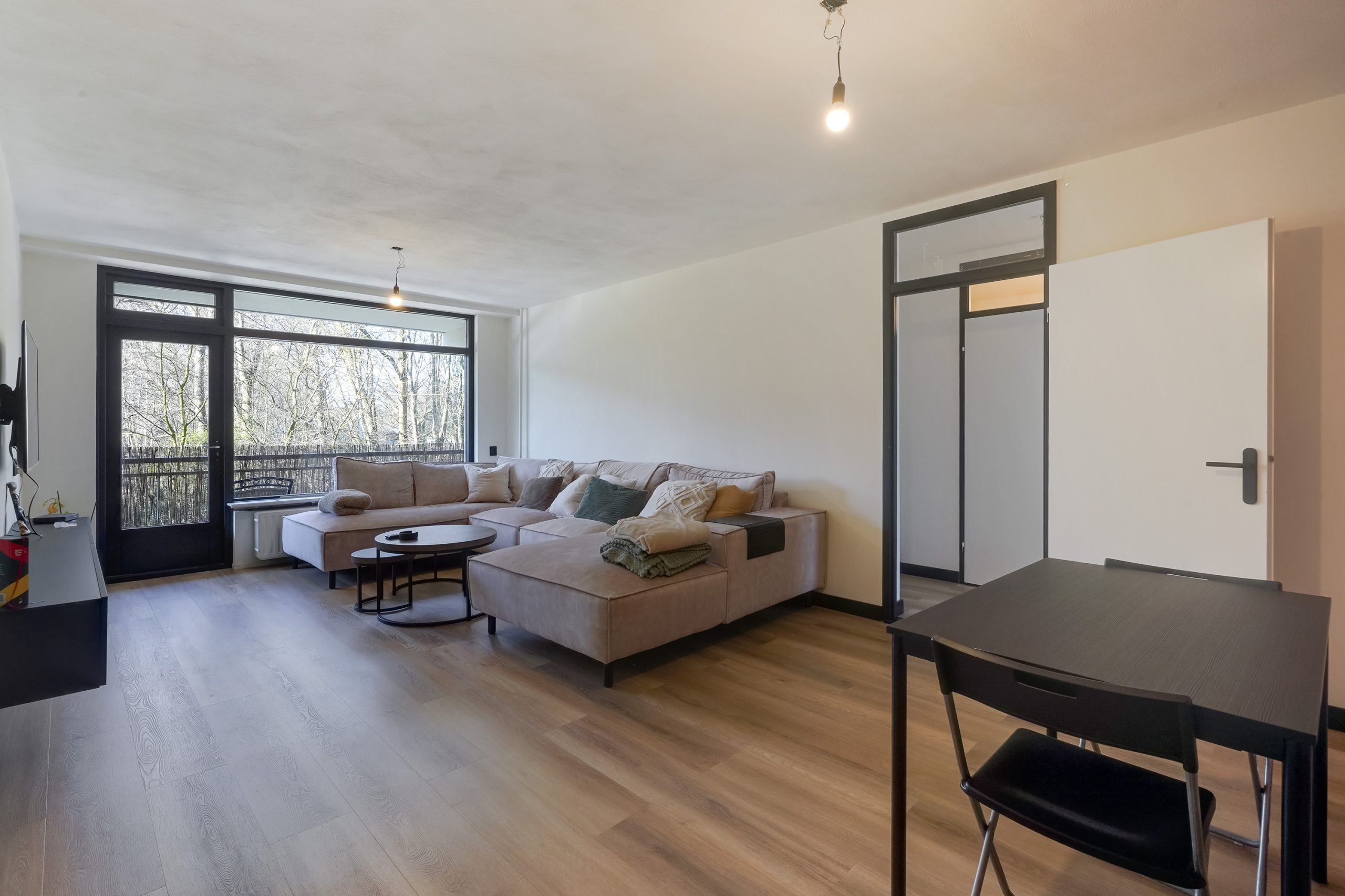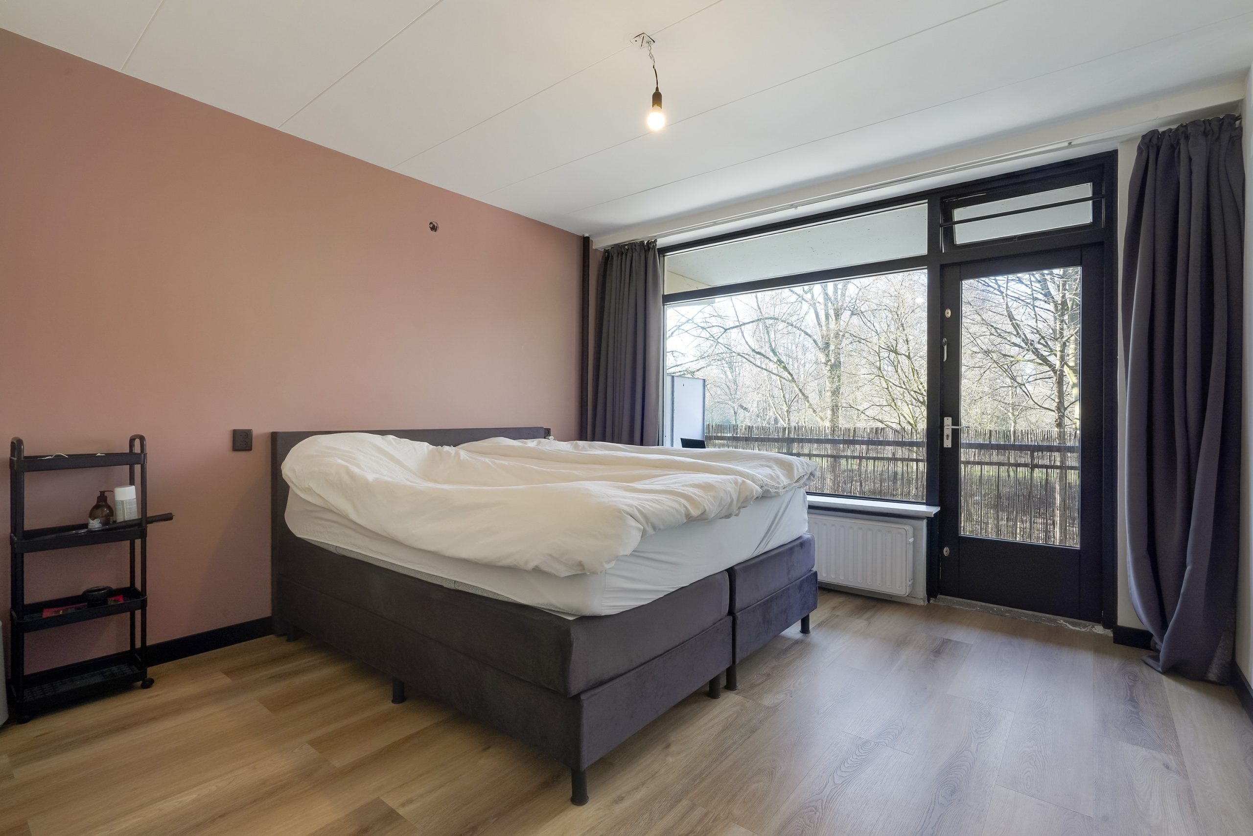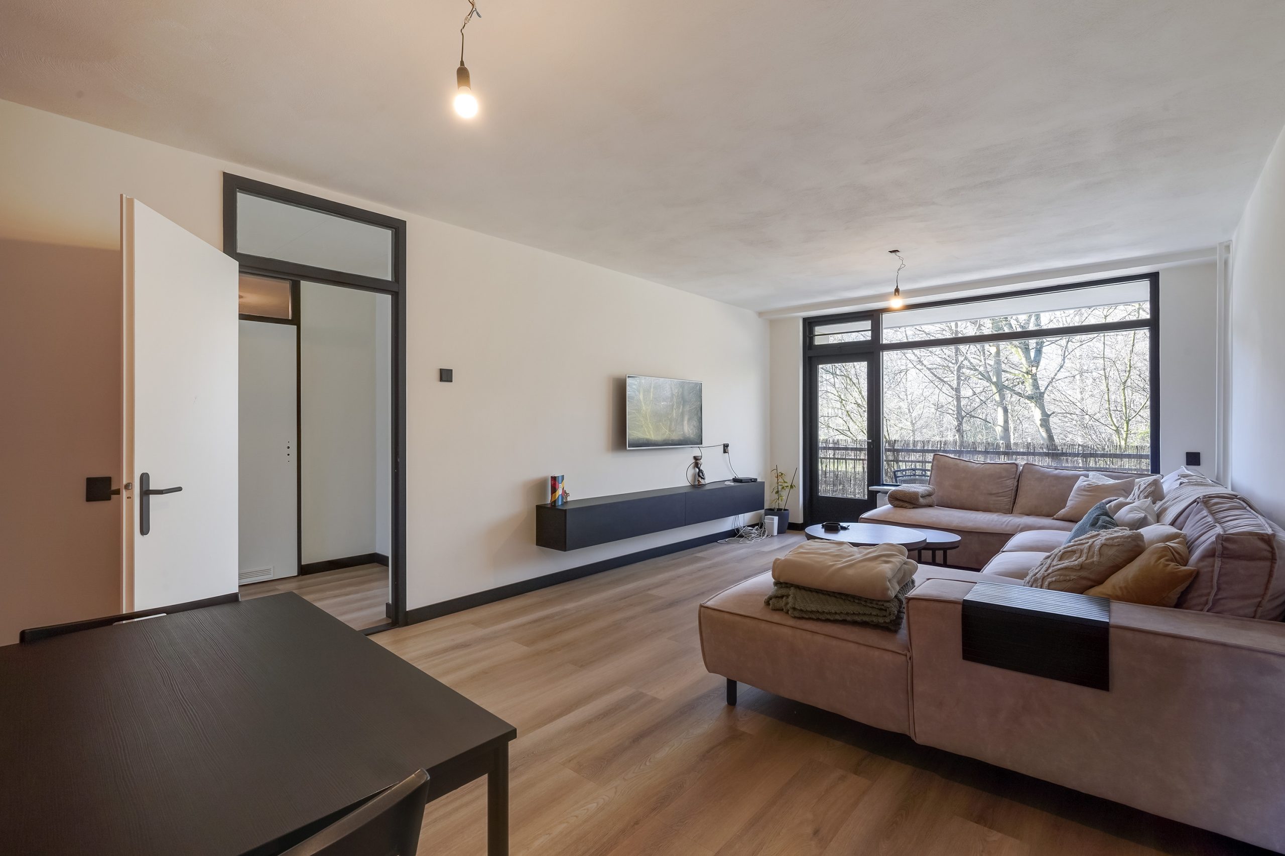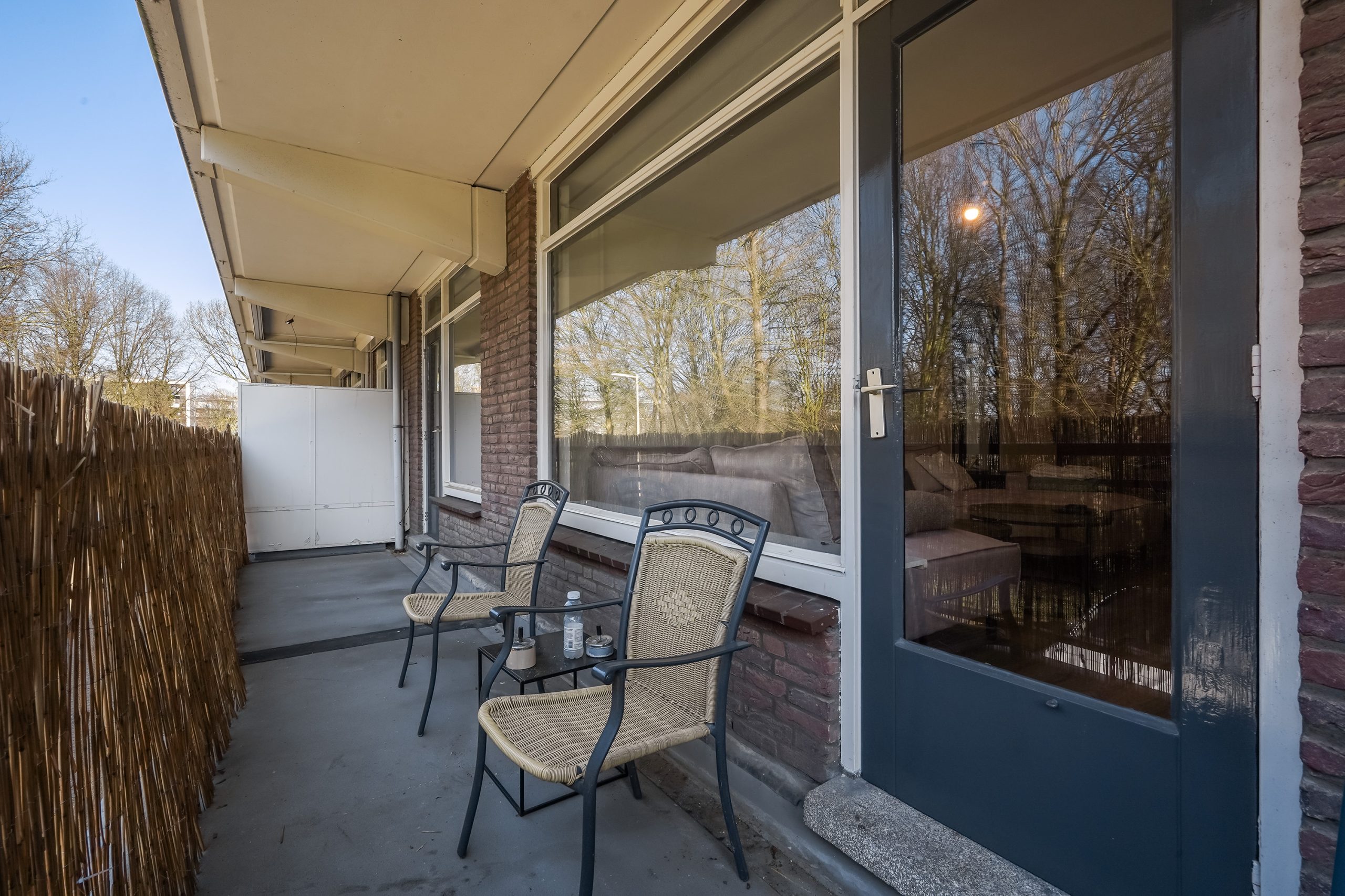 Het royale balkon op het zuidwesten biedt volop zon en een vrij uitzicht op het park.