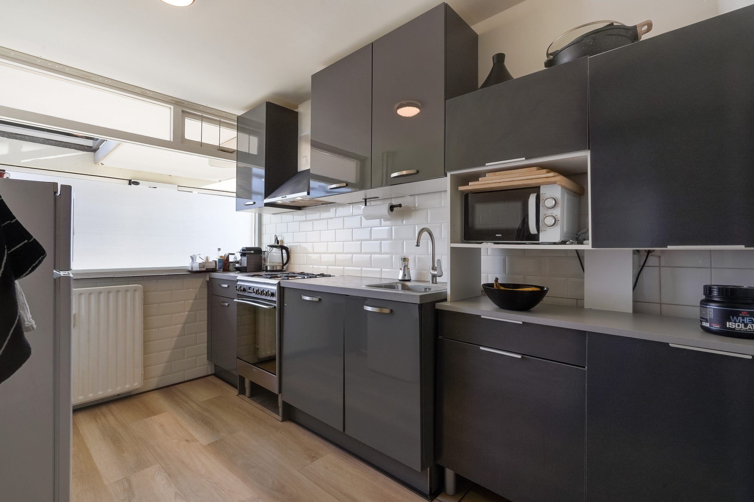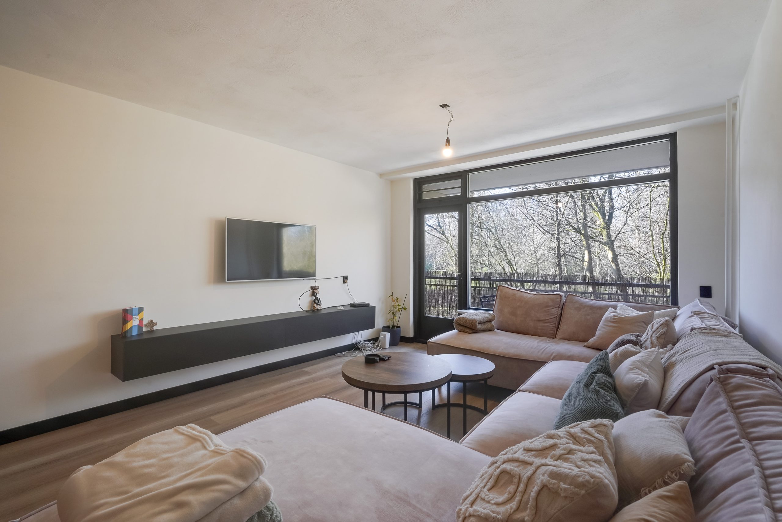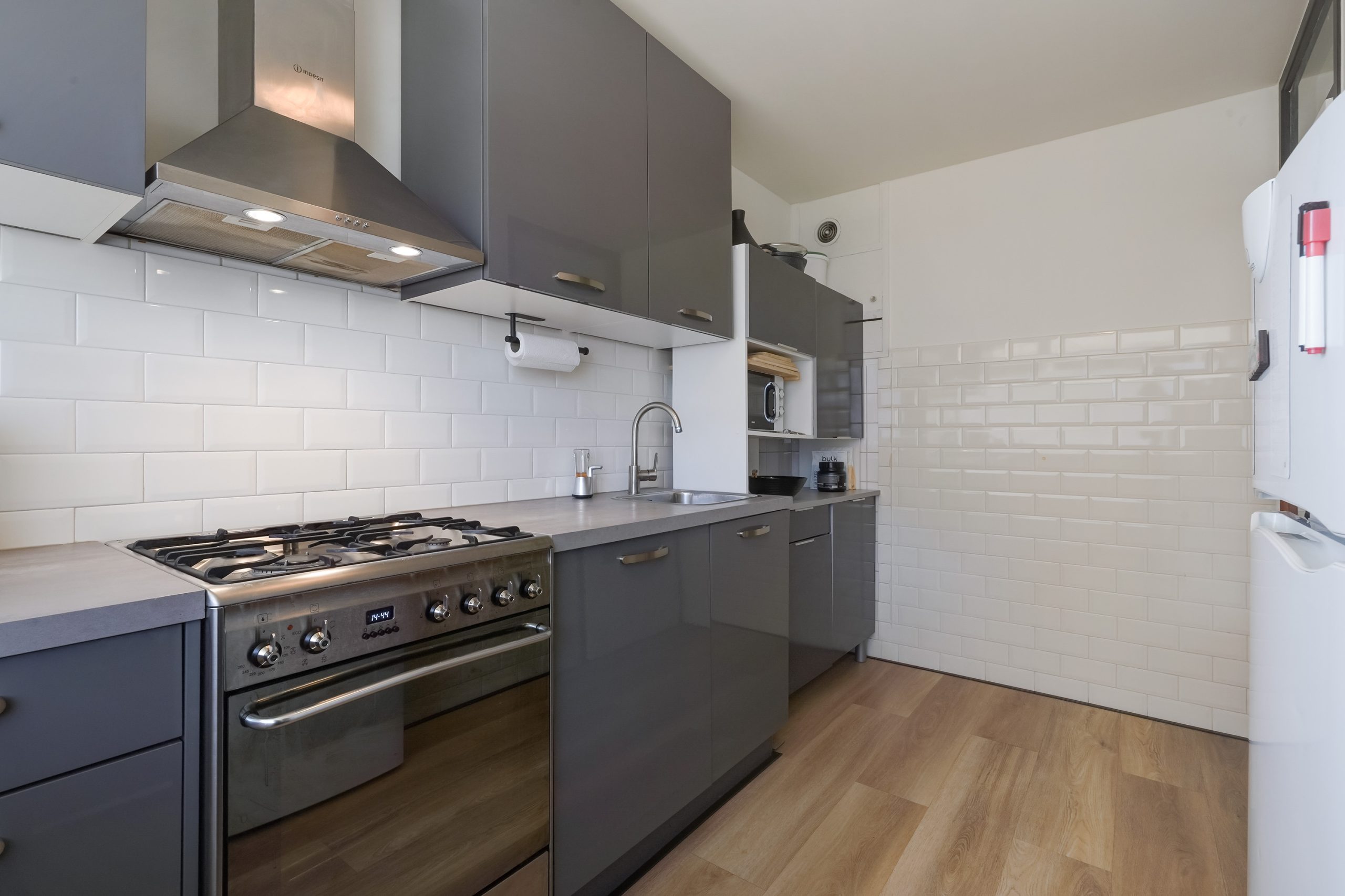De ruime en lichte woon-/eetkamer biedt een prettig uitzicht over het groen van park ‘Prinsenhof’. De moderne keuken is voorzien van diverse inbouwapparatuur.