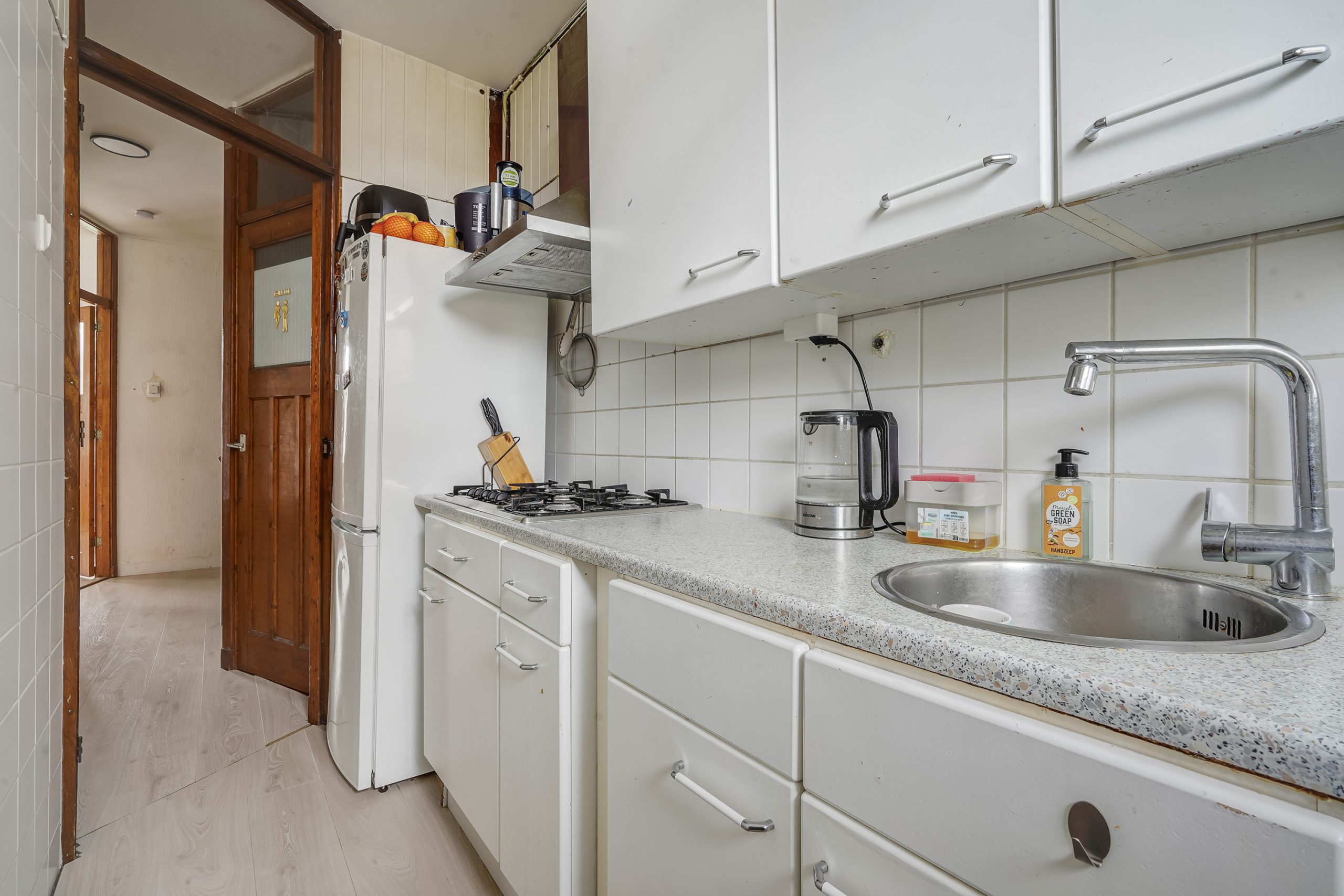 U komt binnen op de overloop met aan de rechterzijde ruimte voor een garderobe. Links vindt u de keuken, voorzien van een 5-pits gasfornuis, afzuigkap en voldoende kastruimte. In de hal bevindt zich tevens het volledig betegelde toilet met fonteintje en mechanische ventilatie.