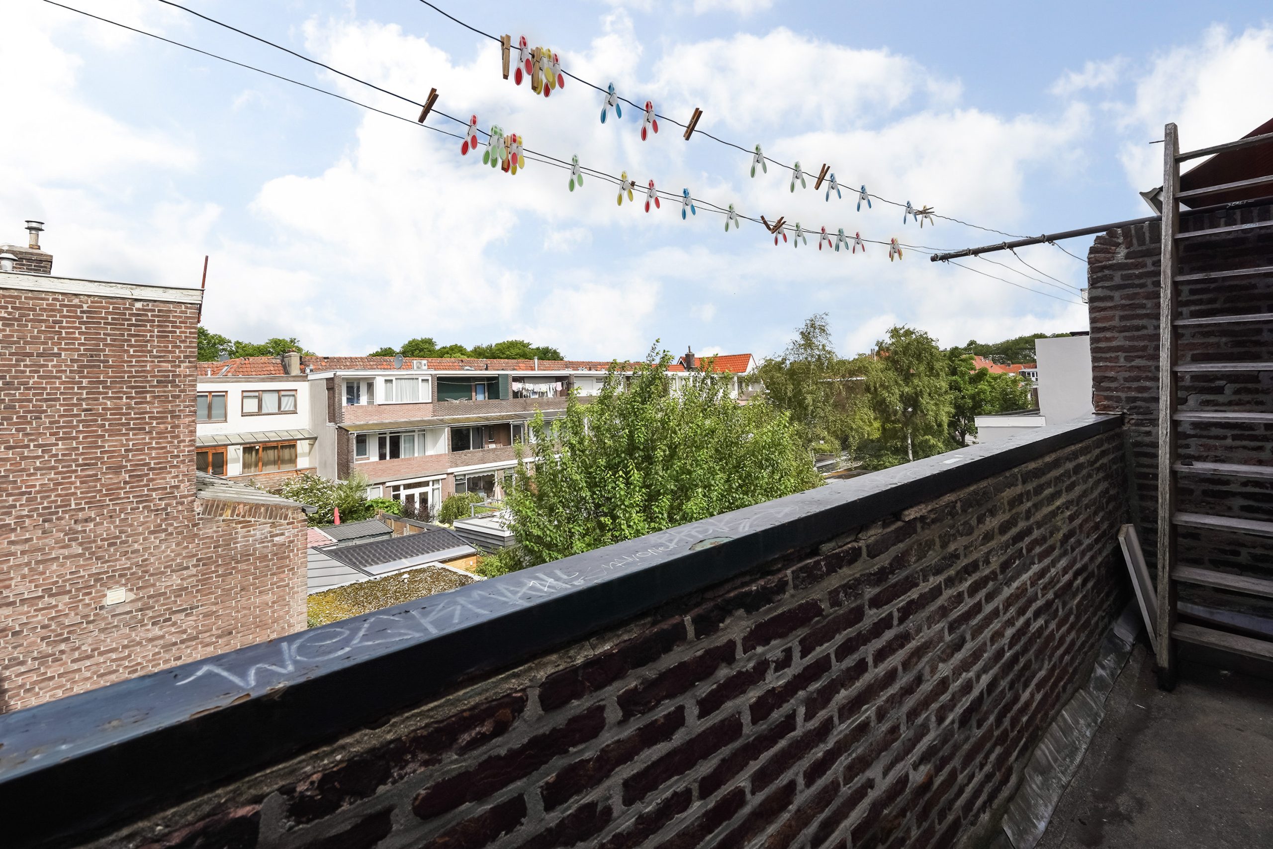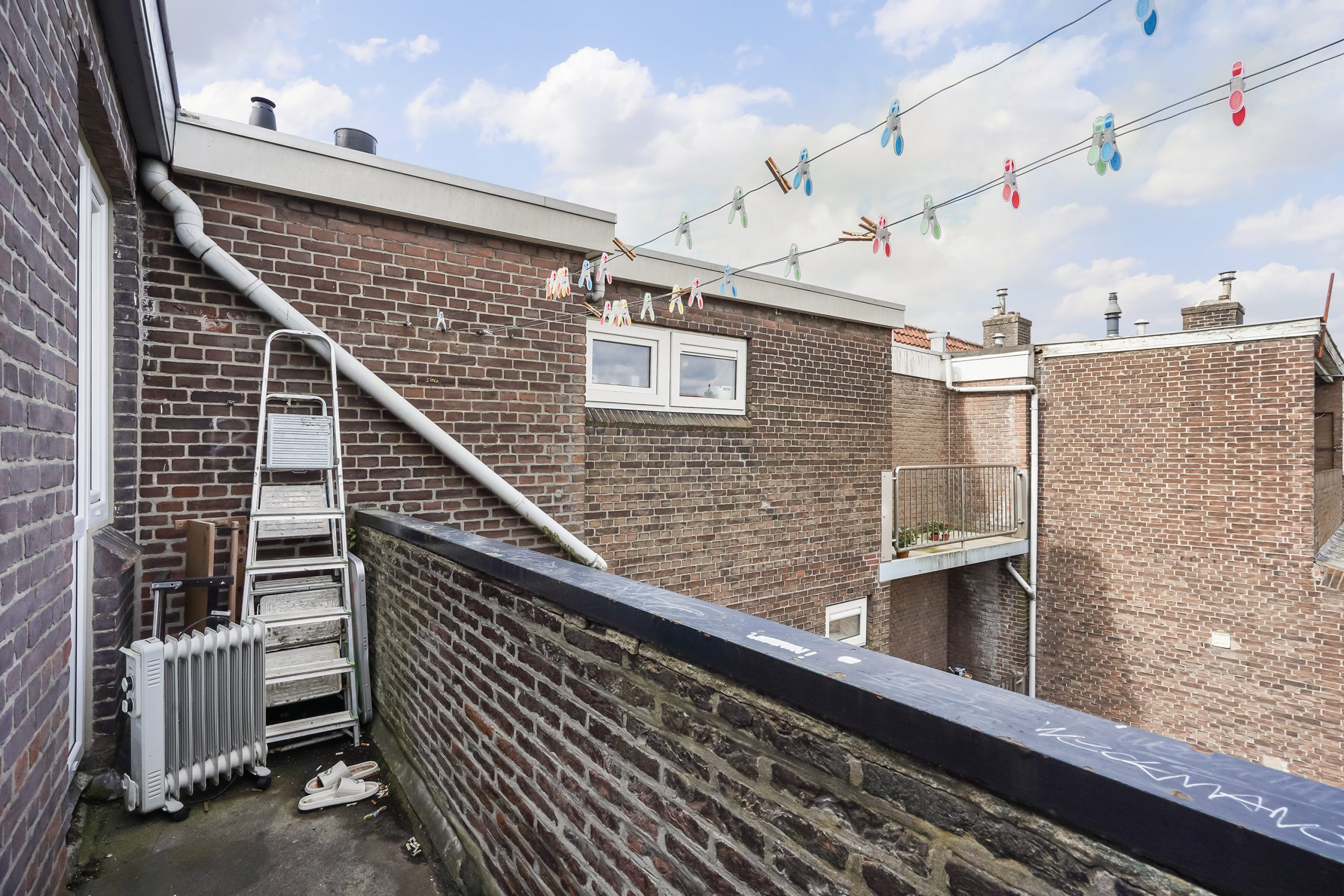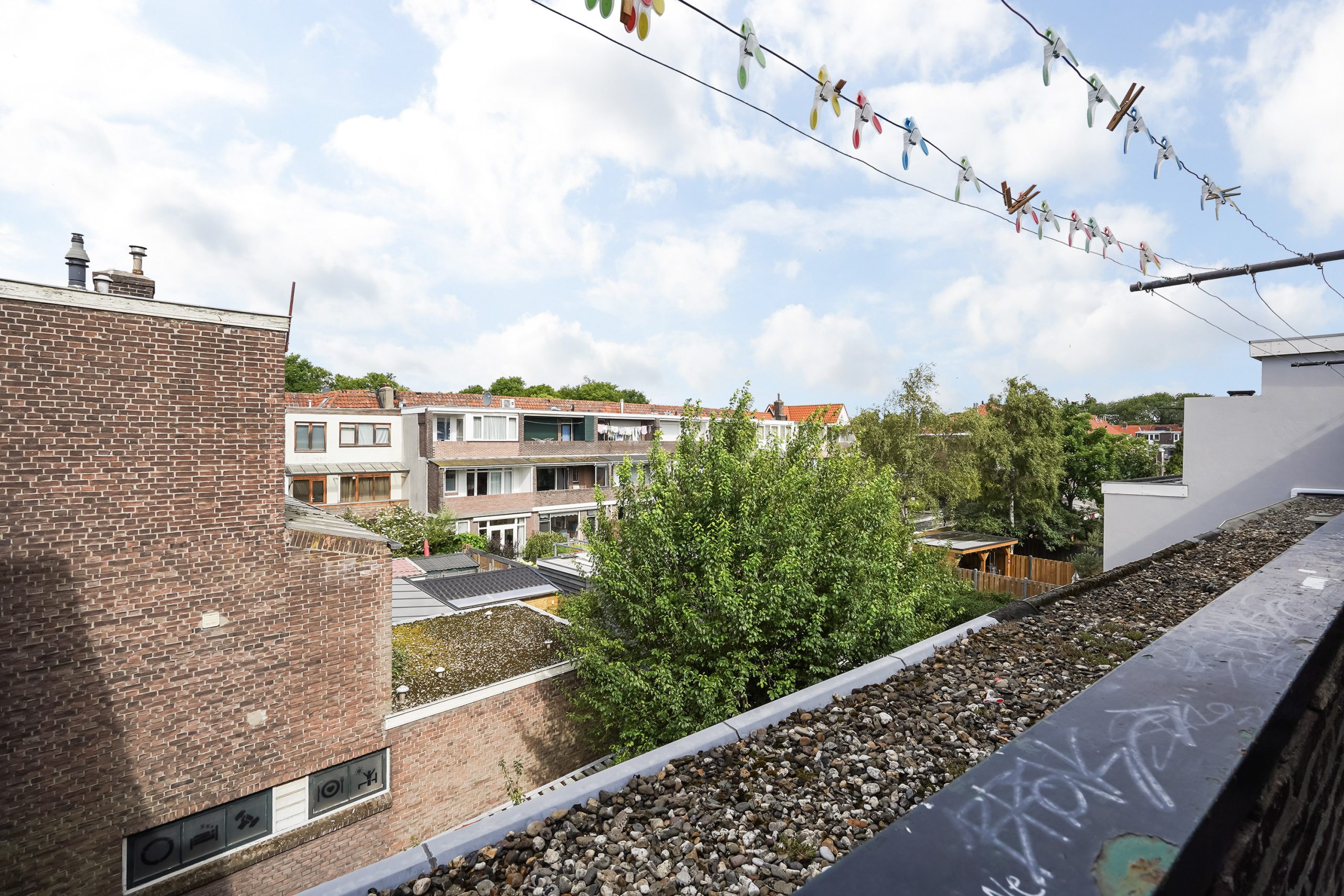 Via een vaste trap bereikt u de tweede verdieping. Hier bevindt zich nog een slaapkamer en de badkamer. De slaapkamer aan de achterzijde biedt direct toegang tot het balkon en het dak. De badkamer is uitgerust met een ligbad met douche, wastafelmeubel en radiator – een fijne plek om tot rust te komen.