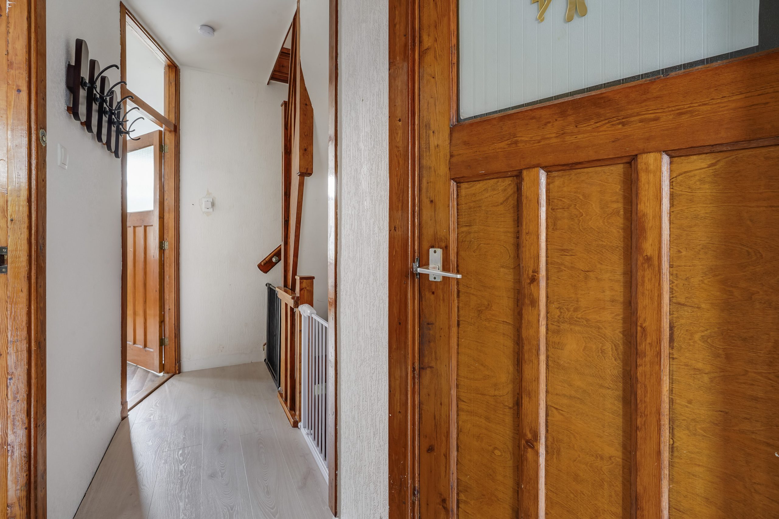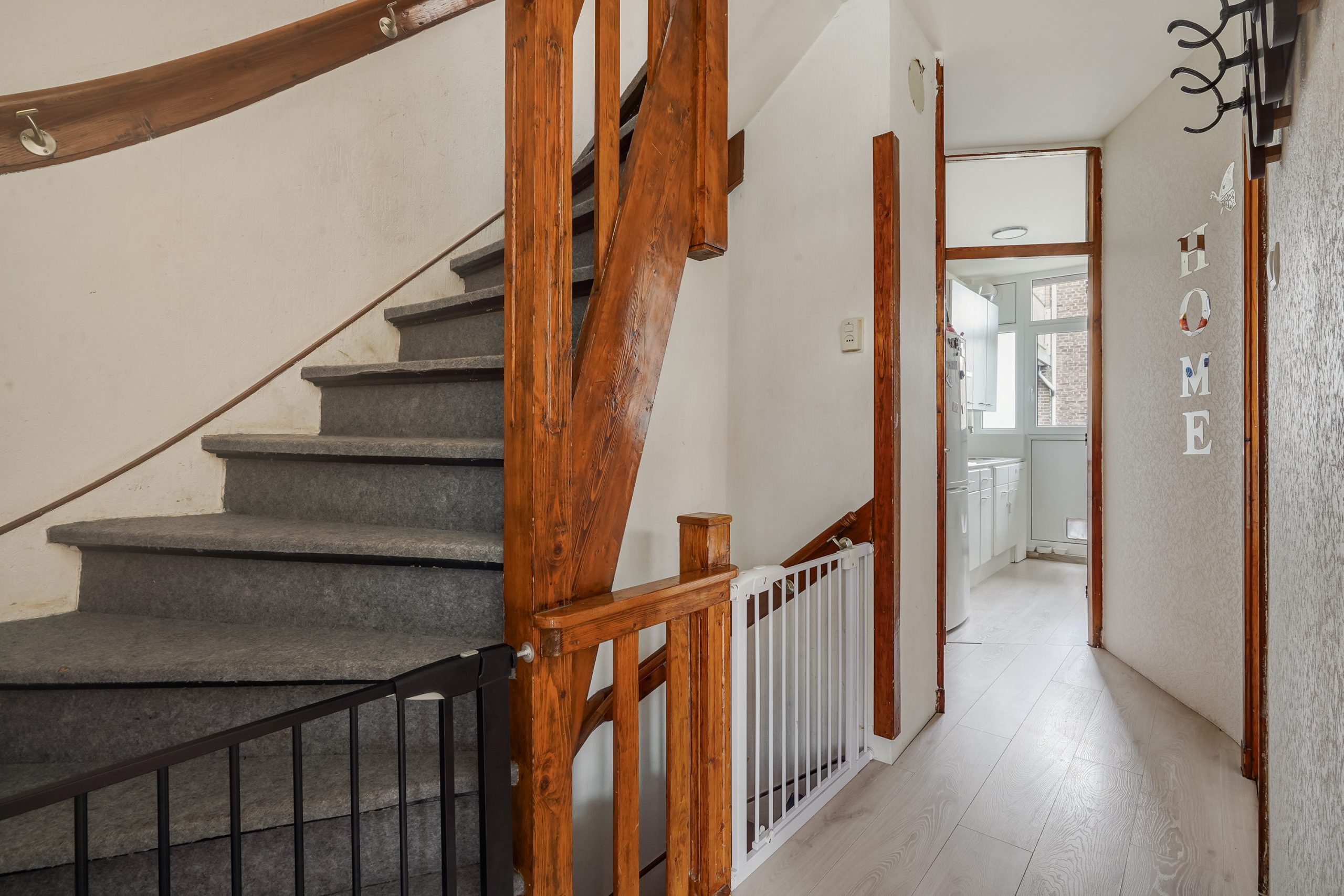 Via de entree bereikt u de meterkast, gelegen links na binnenkomst. De trap leidt u naar het appartement op de eerste verdieping.