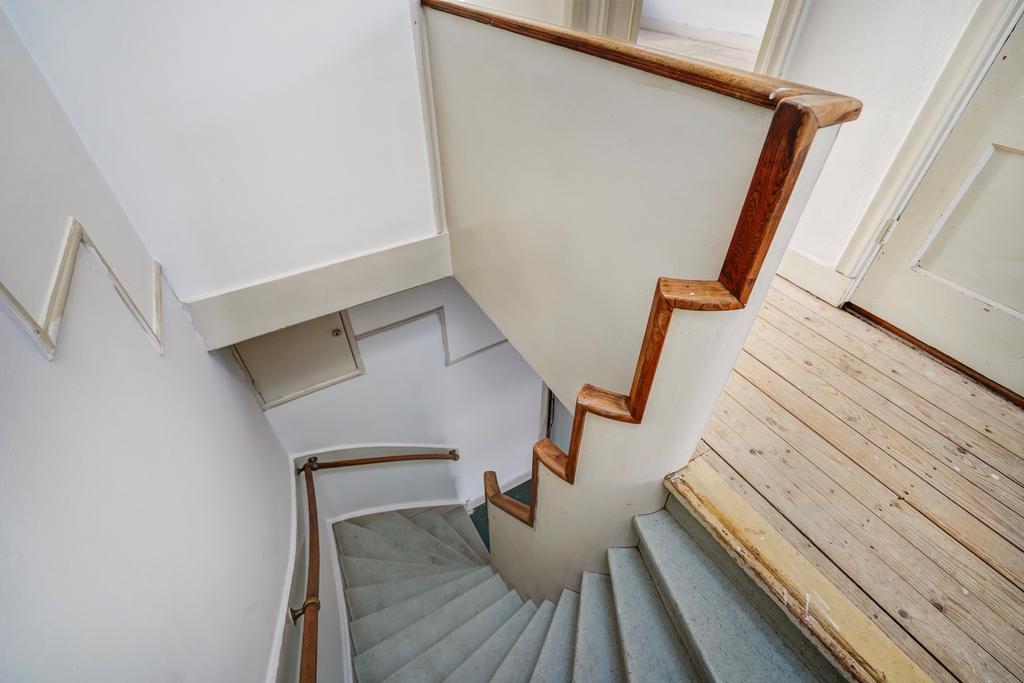 Entree op de begane vloer waar de meterkast netjes is weggewerkt. Middels trap komt u terecht op de eerste verdieping. Via de overloop zijn alle vertrekken te bereiken. De ruime woonkamer met authentieke ensuite-deuren en natuurstenen haard geeft u toegang tot 2 balkons gelegen op het zuidoosten en het noordwesten. De besloten keuken is gelegen aan de achterzijde van de woning waar vanuit ook toegang tot het balkon met berging. Verder treft u op de overloop de toiletruimte en stookruimte met een Intergas HRE combi ketel uit 2017.