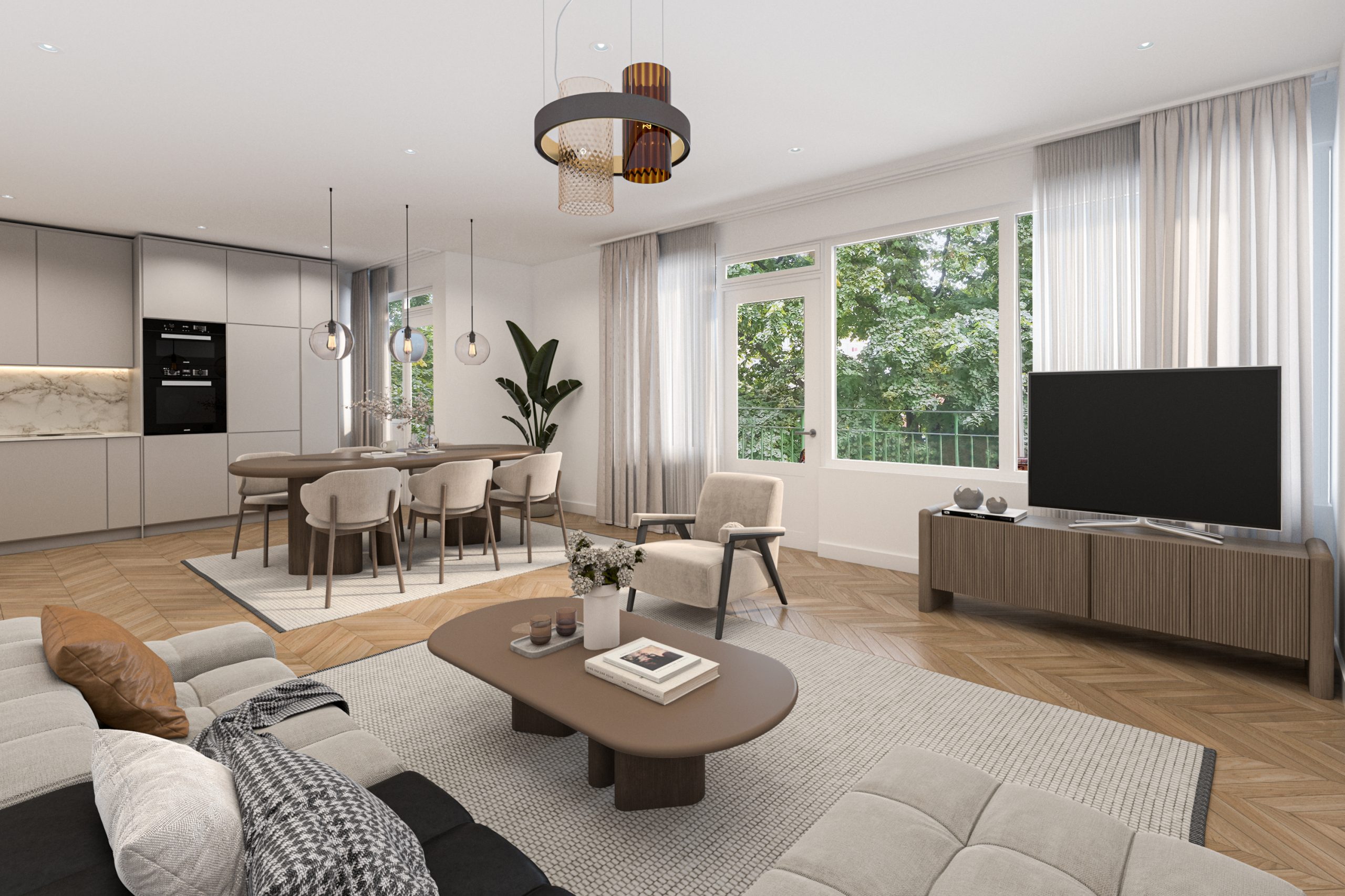 Living in a green and peaceful environment with all amenities close by? Welcome to Vlamenburg 63 in The Hague. This spacious 3-room apartment of approx. 94 m² is located on the second floor, accessible by elevator, and features two sunny south-facing balconies. The apartment offers plenty of potential to modernize according to your own taste. To give you an impression of what is possible, an artist’s impression has been added for inspiration.