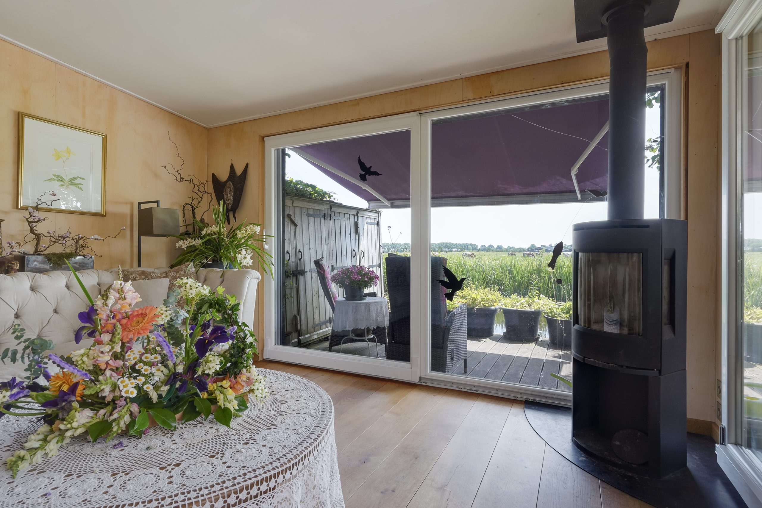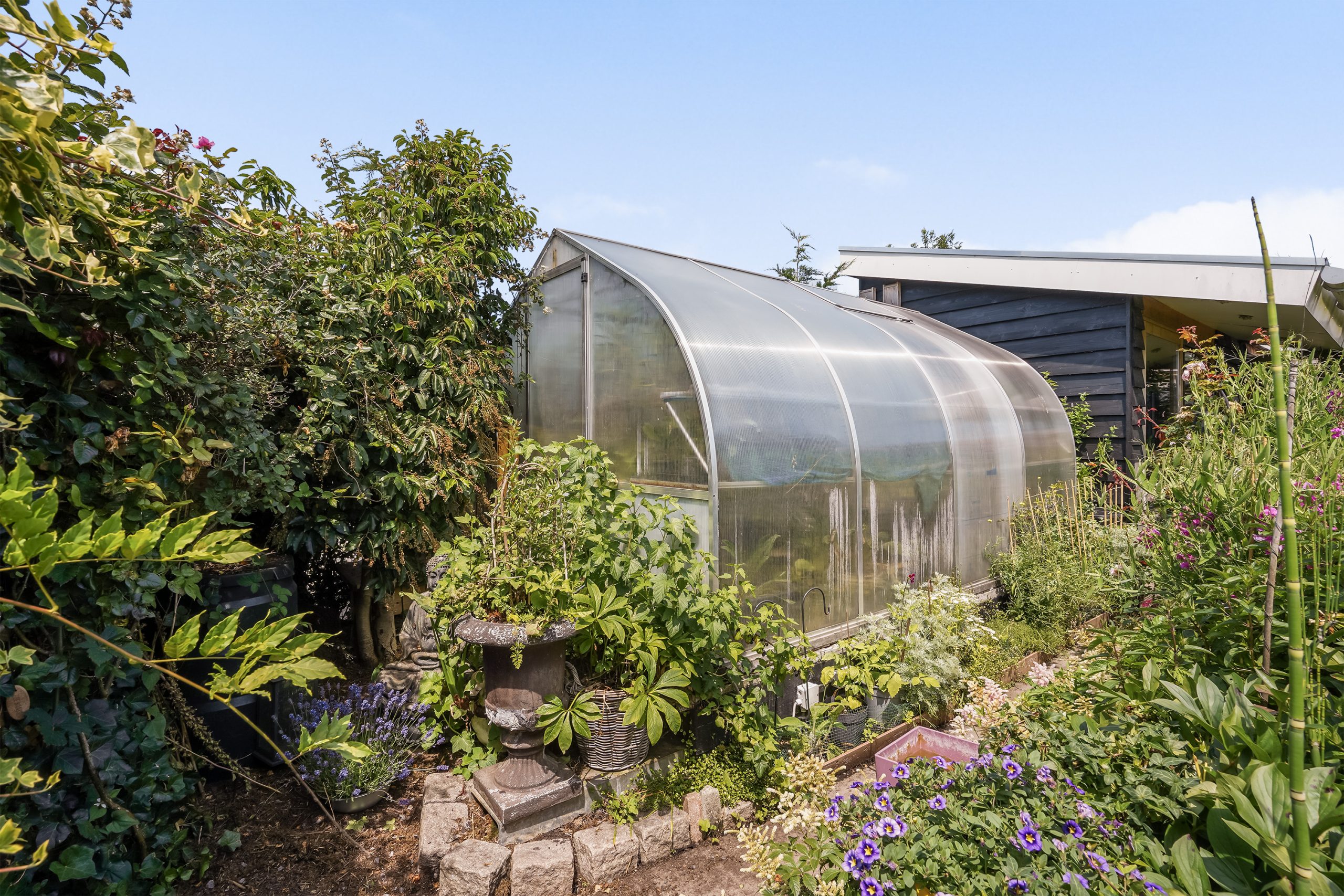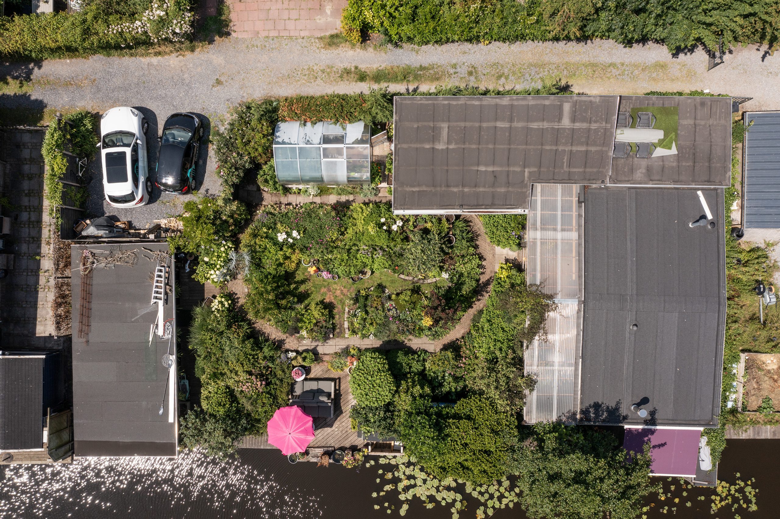The garden is a true paradise. With a deck on the water, two seating areas, a large boathouse, and even a heated greenhouse, you can enjoy the outdoors in every season. Whether you’re relaxing with a view over the water, gardening, or taking your boat out for a trip—everything is possible here.