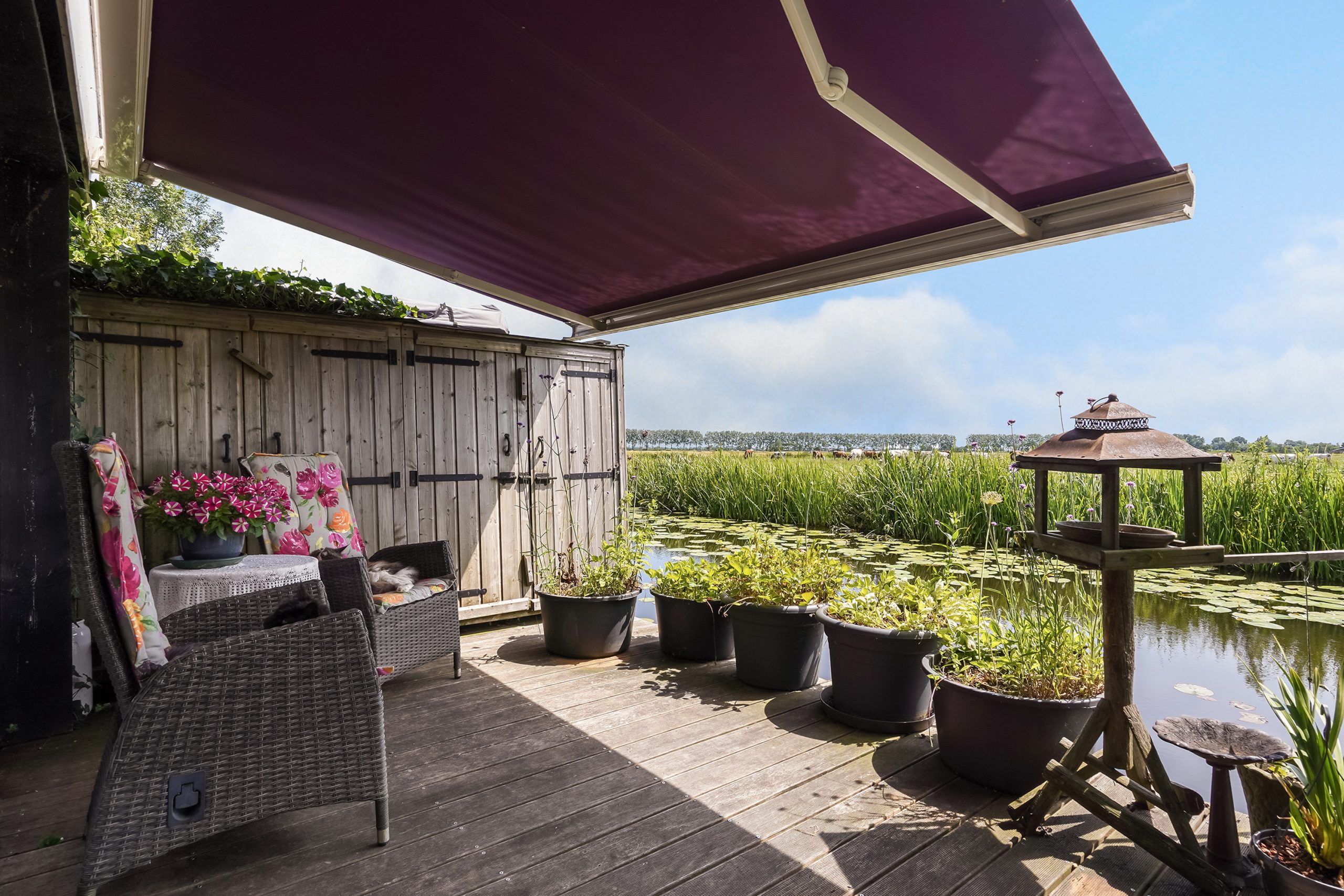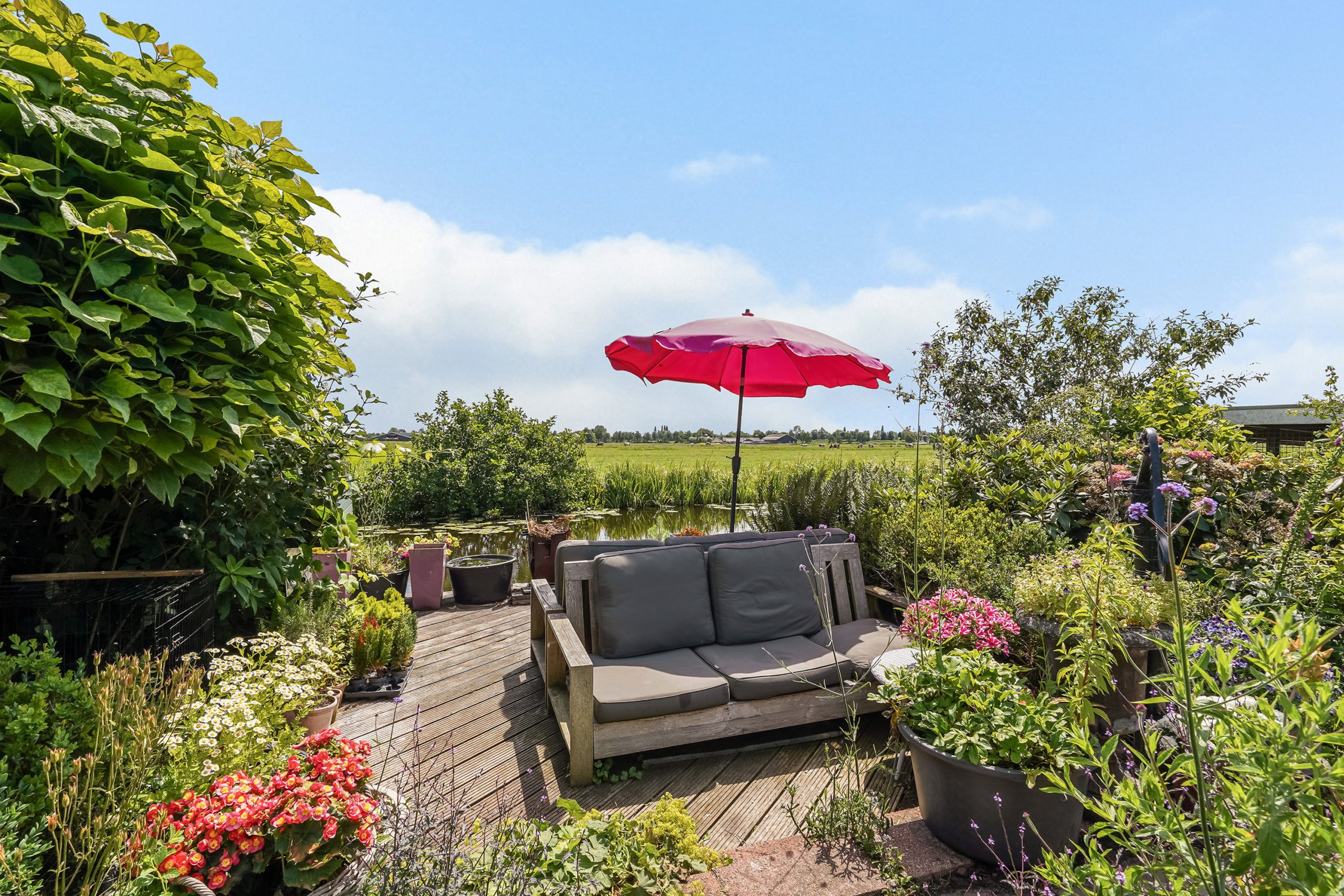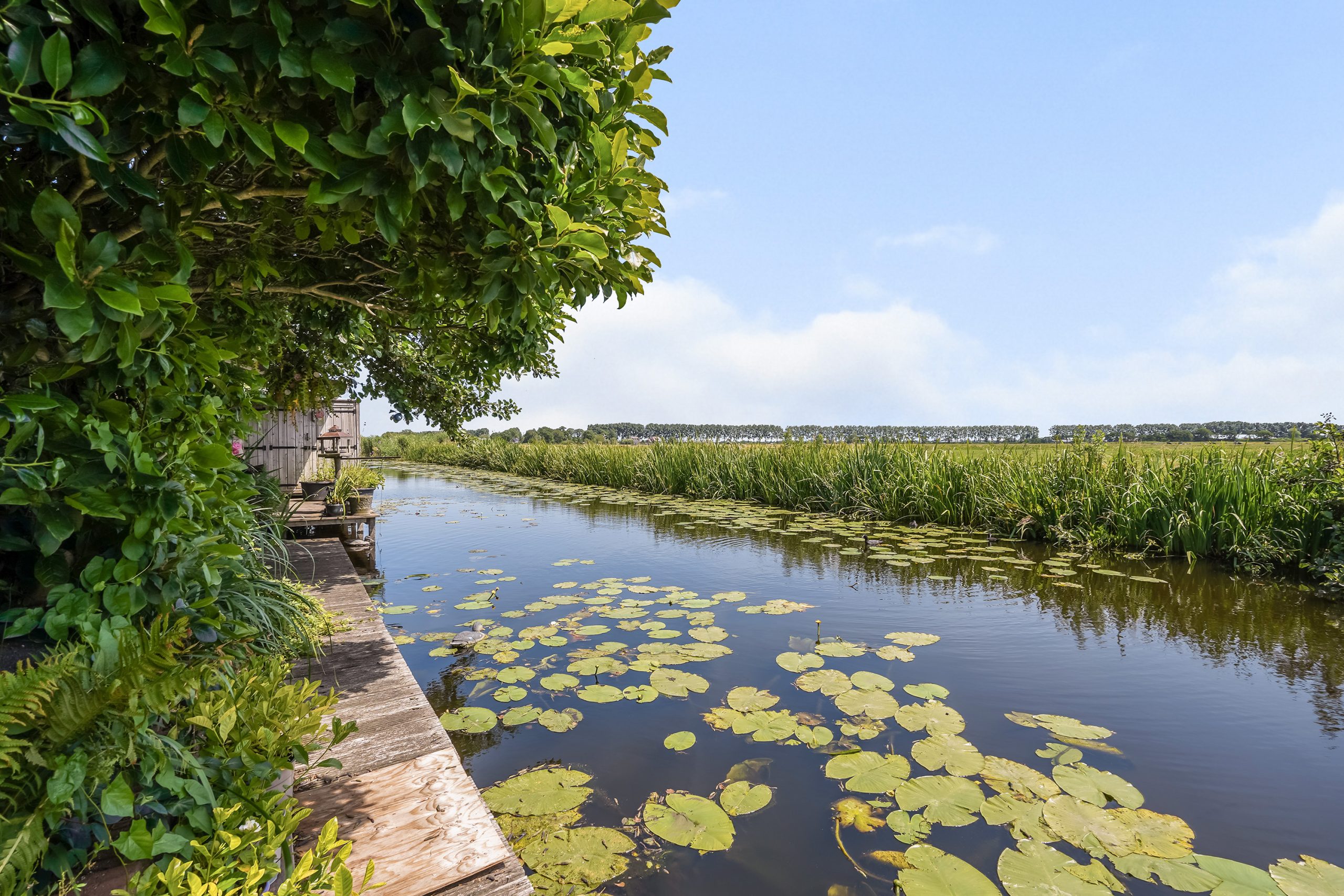• Grote tuin met vlonder, boothuis en verwarmde kas