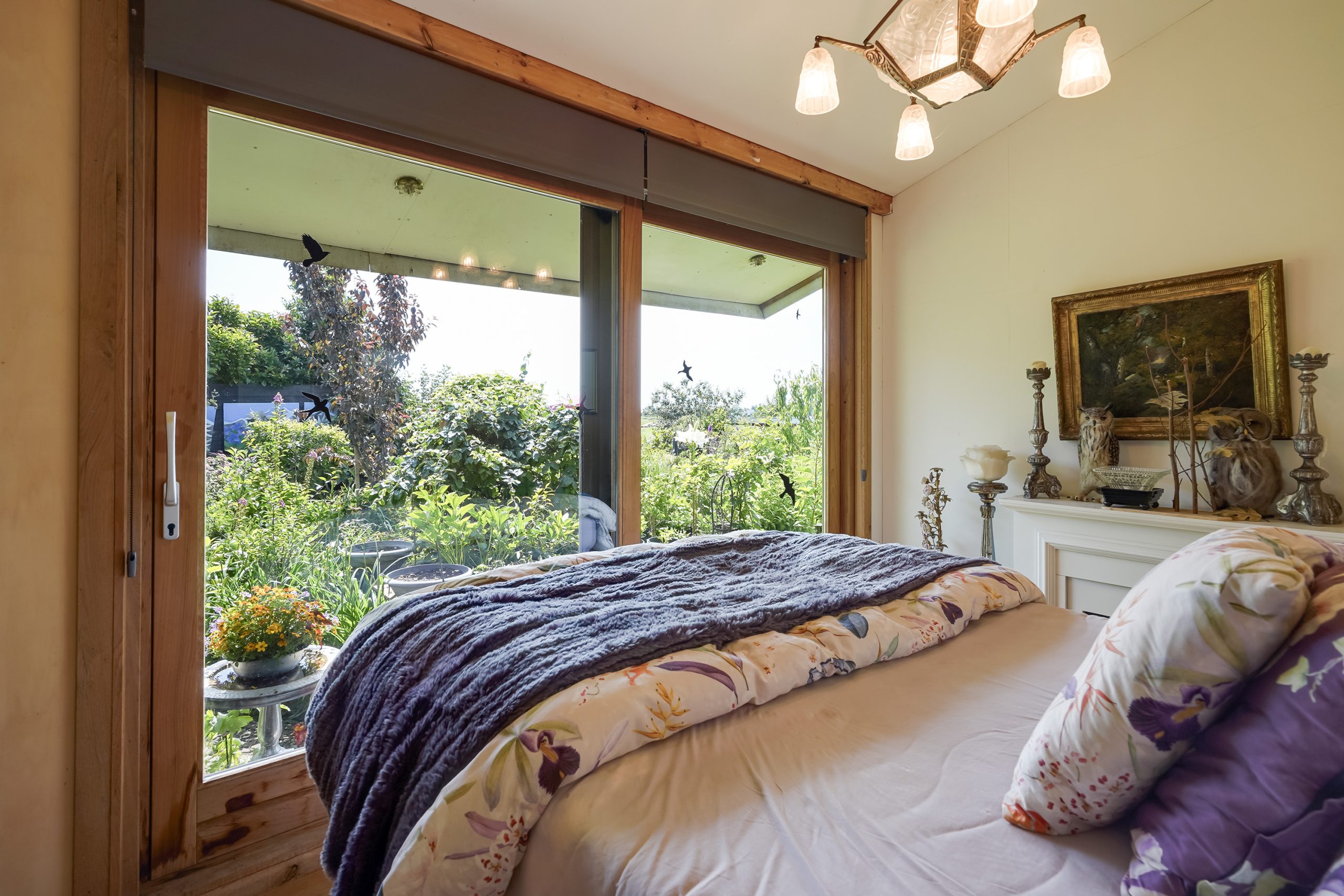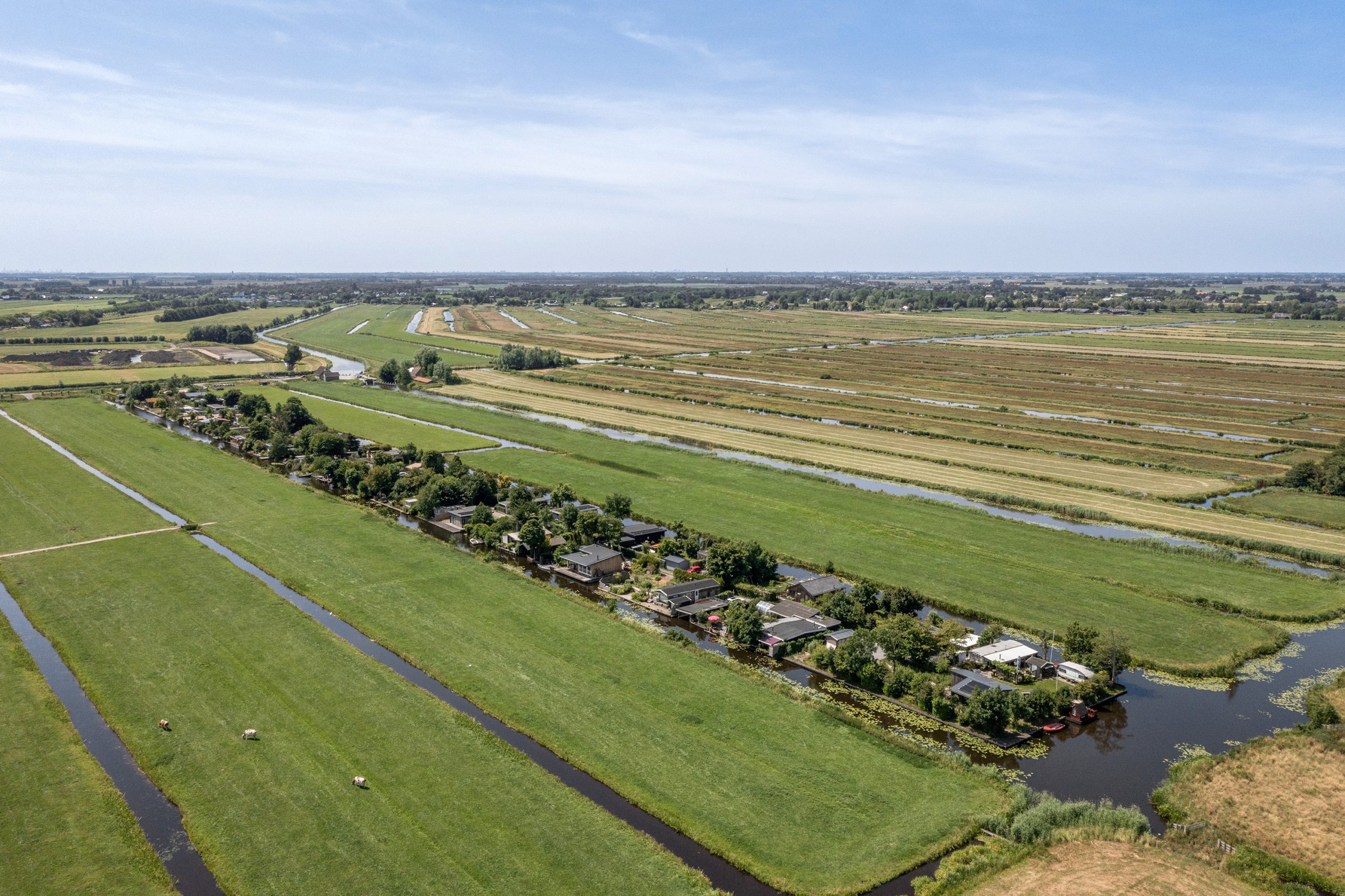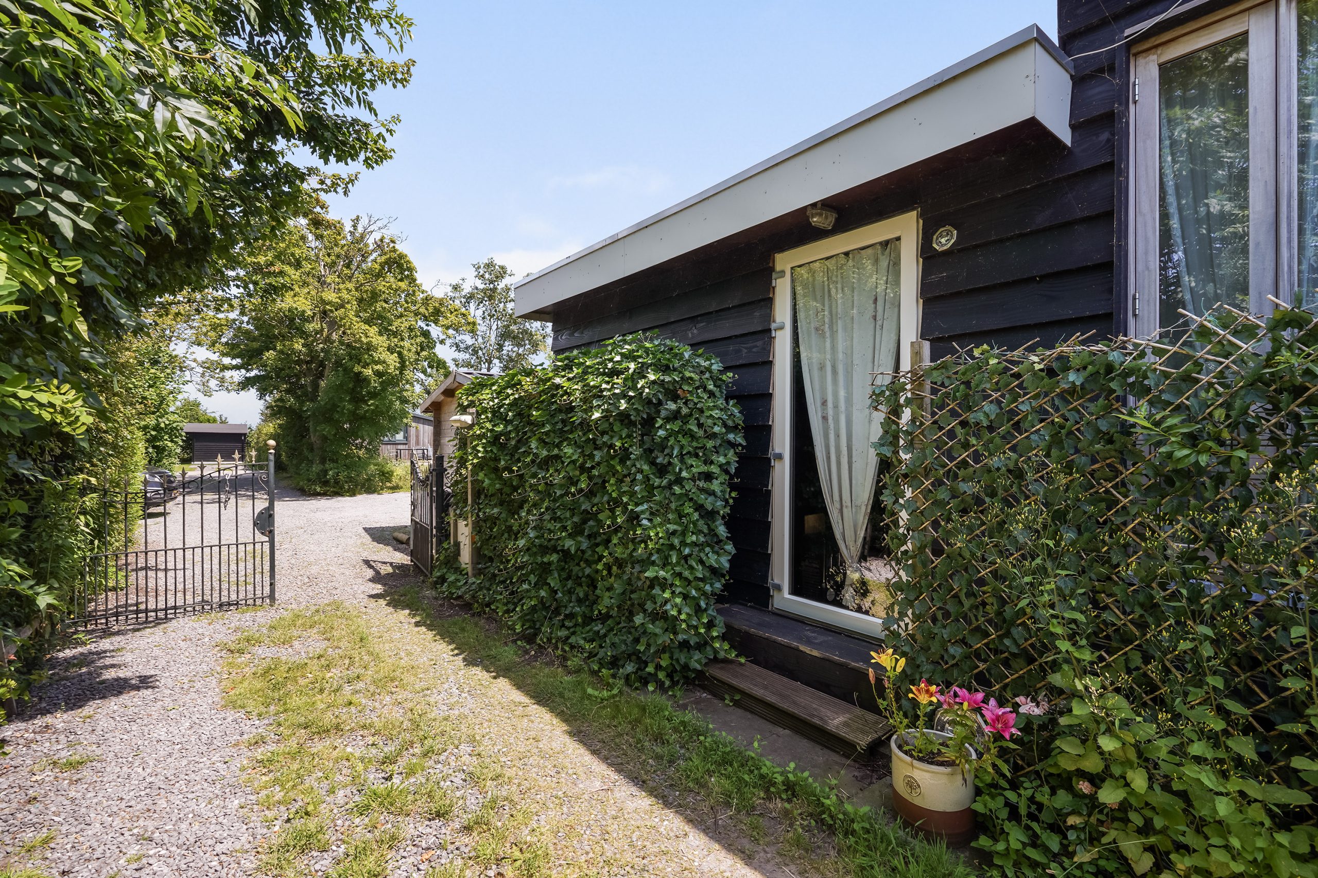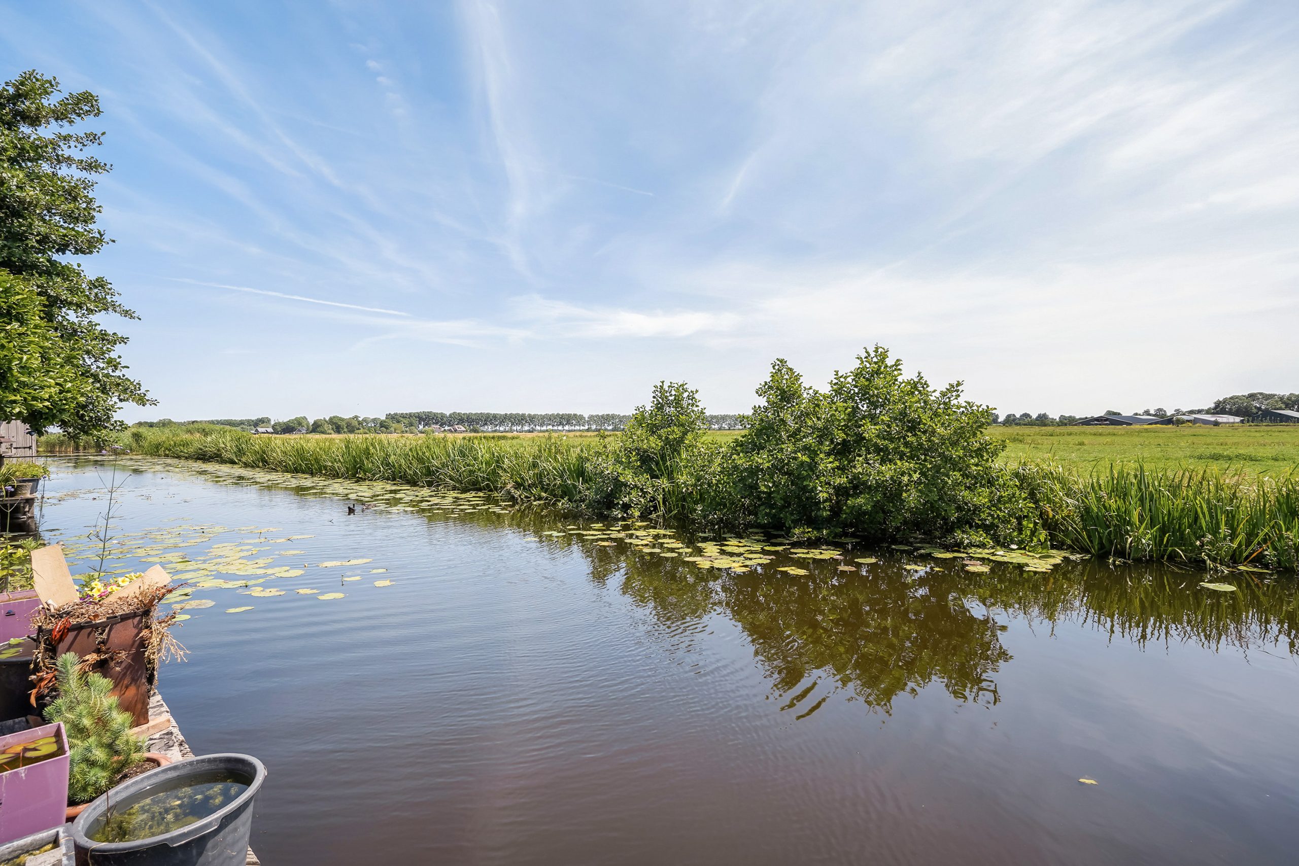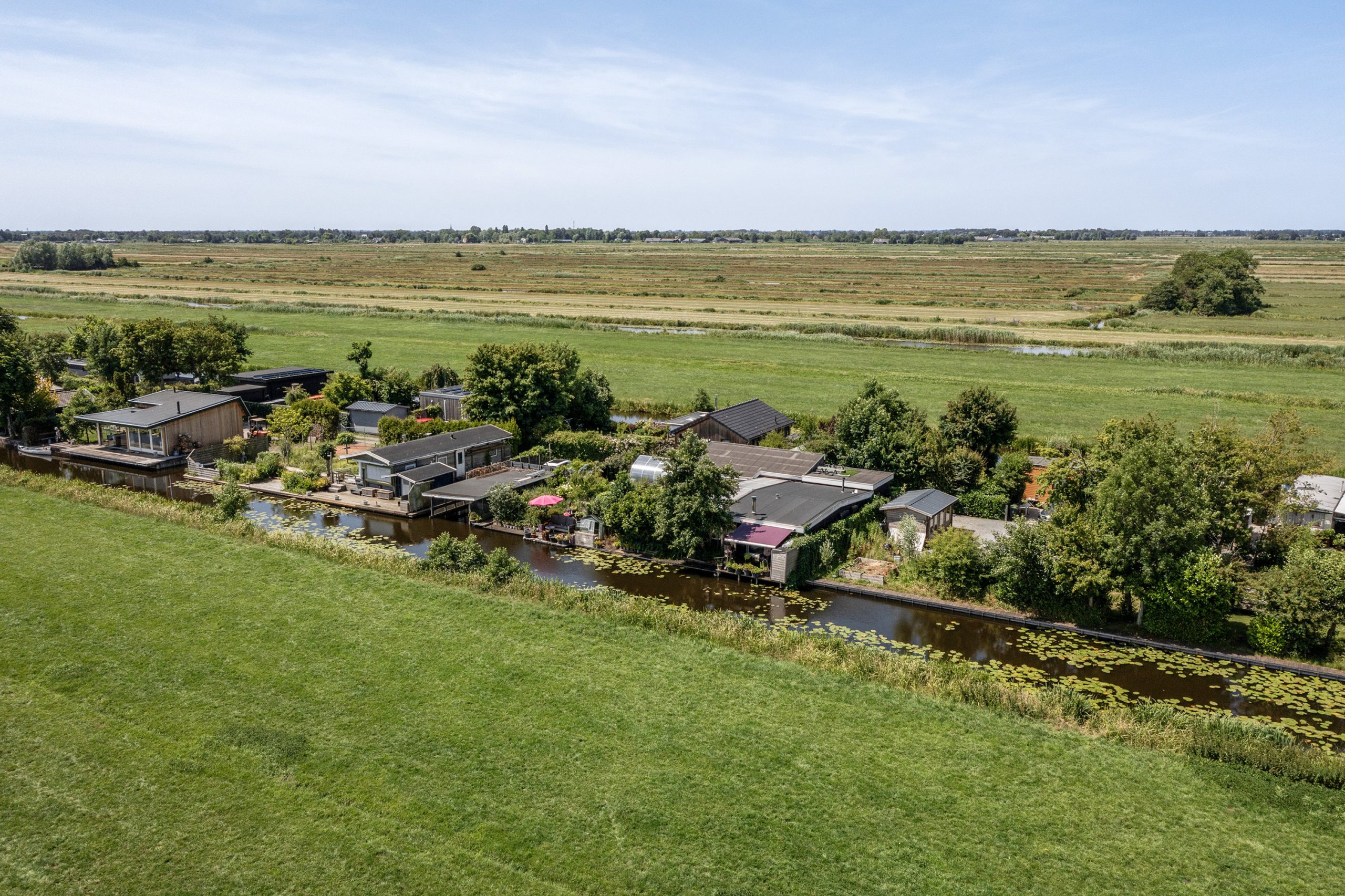 In 2022, the property was expanded with a fully insulated living area. Here you’ll find a spacious bedroom with walking-closet and sliding doors opening onto the garden and a phenomenal view over the polder. Adjacent lies the (second) modern bathroom with bathtub and wall-mounted toilet. There is also a practical storage room with the utility meters and the boiler.