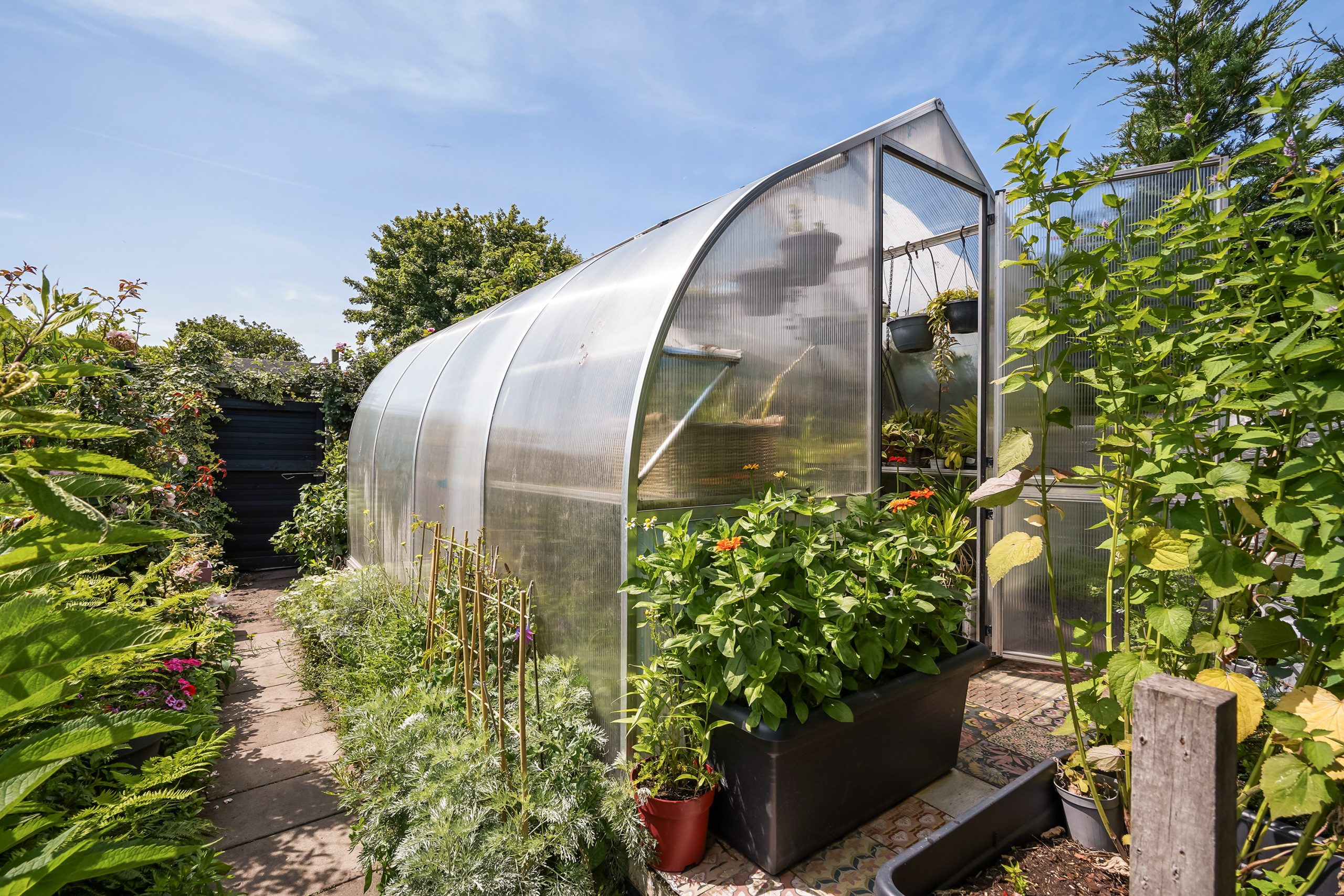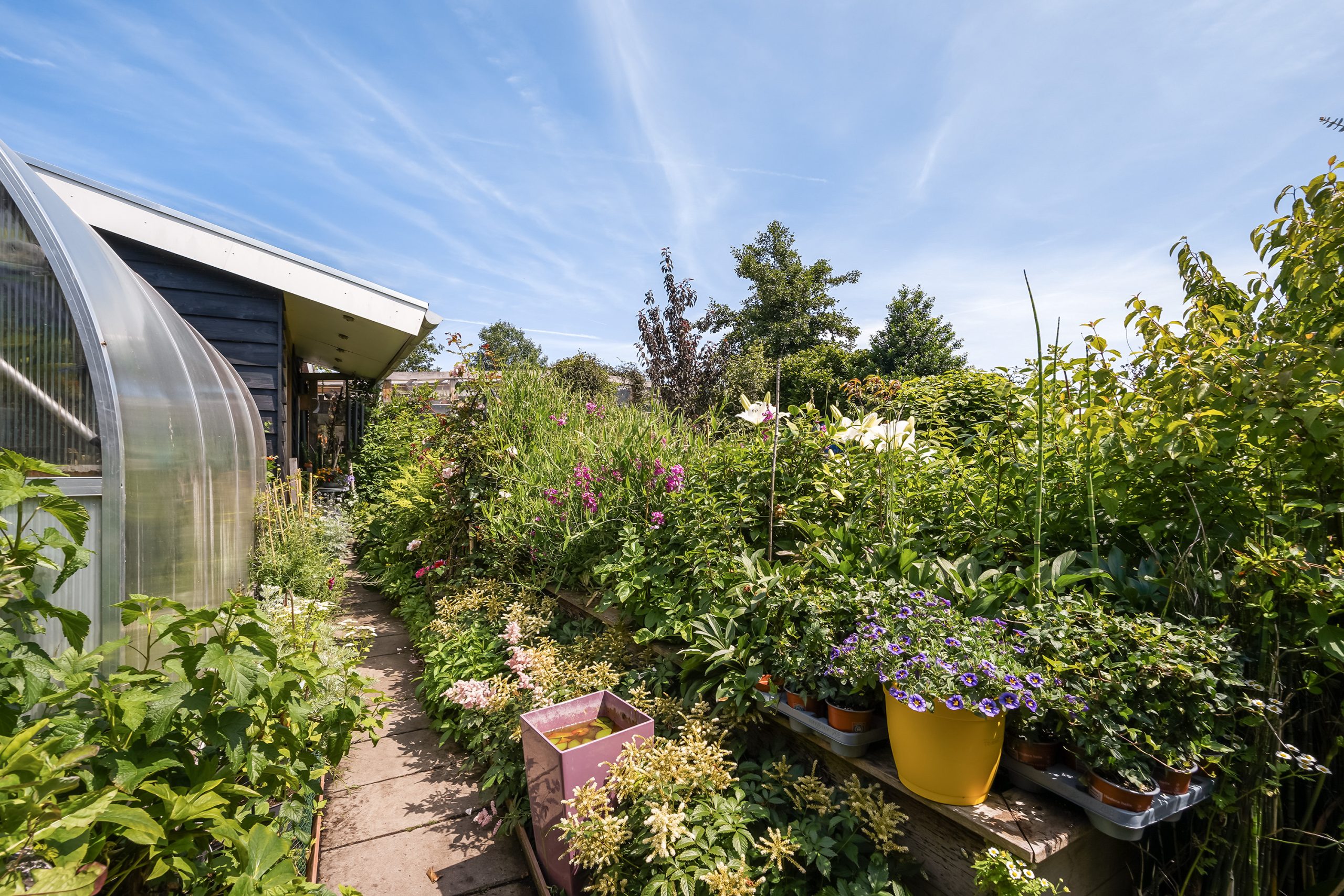De tuin is een waar paradijs. Met een vlonder aan het water, twee zitgedeeltes, een ruim boothuis en zelfs een verwarmde kas kun je hier alle seizoenen genieten. Of je nu ontspant met uitzicht over het water, bezig bent met tuinieren of een bootje pakt voor een tochtje – alles is hier mogelijk.