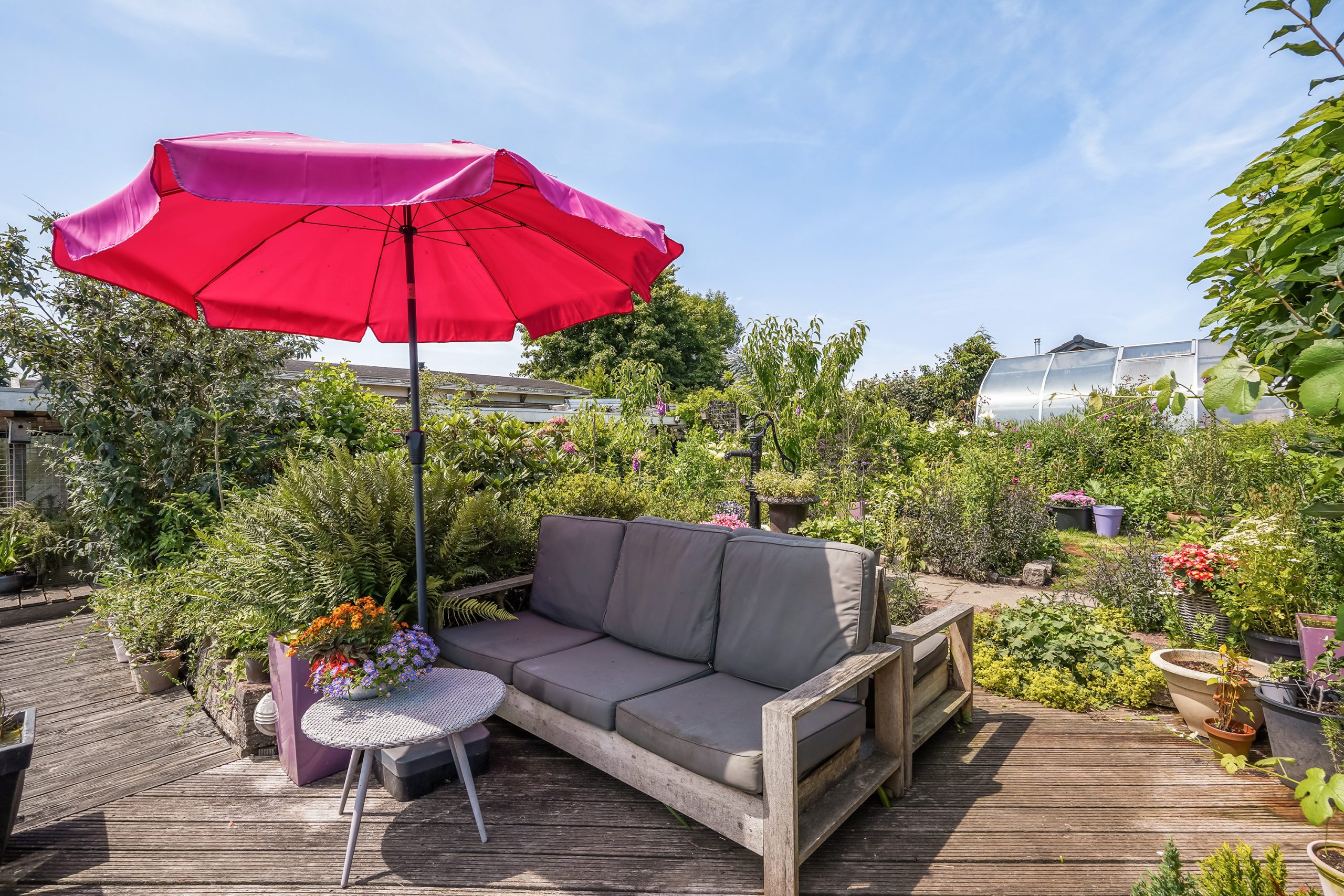 • Large garden with deck, boathouse, and heated greenhouse