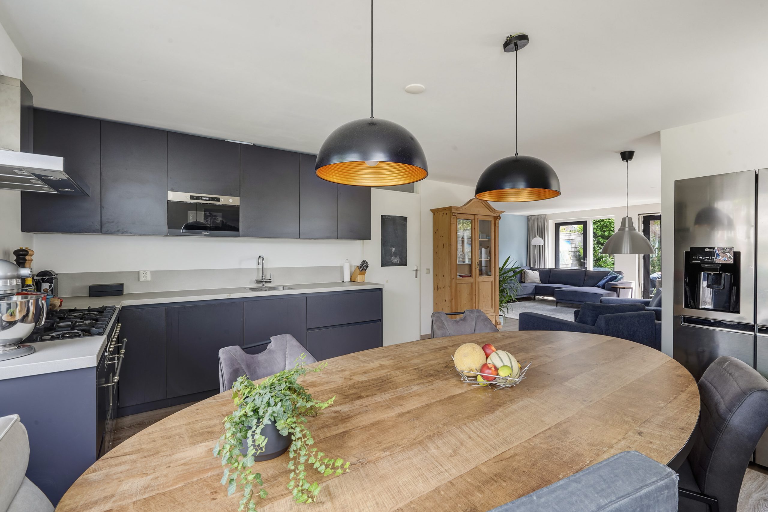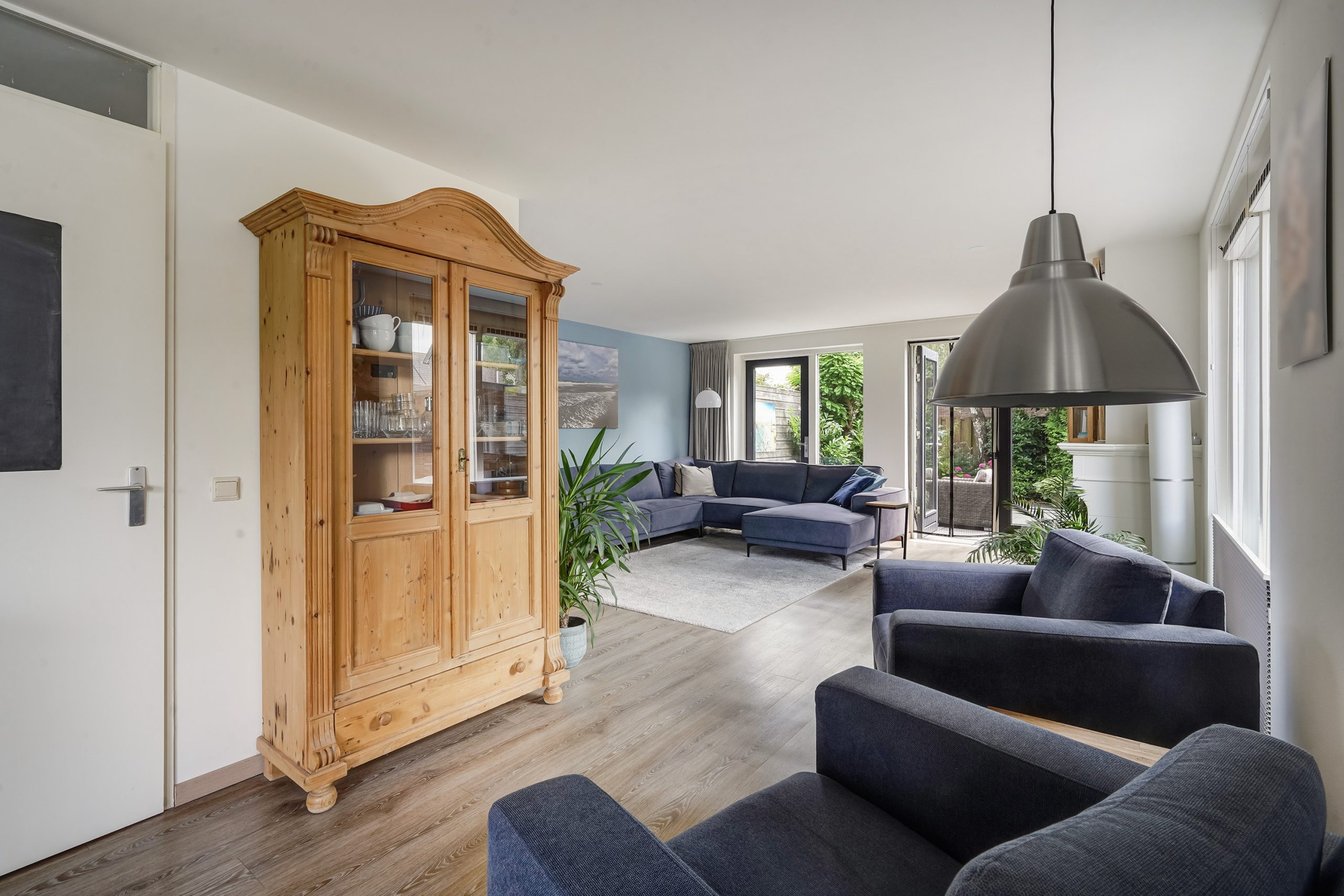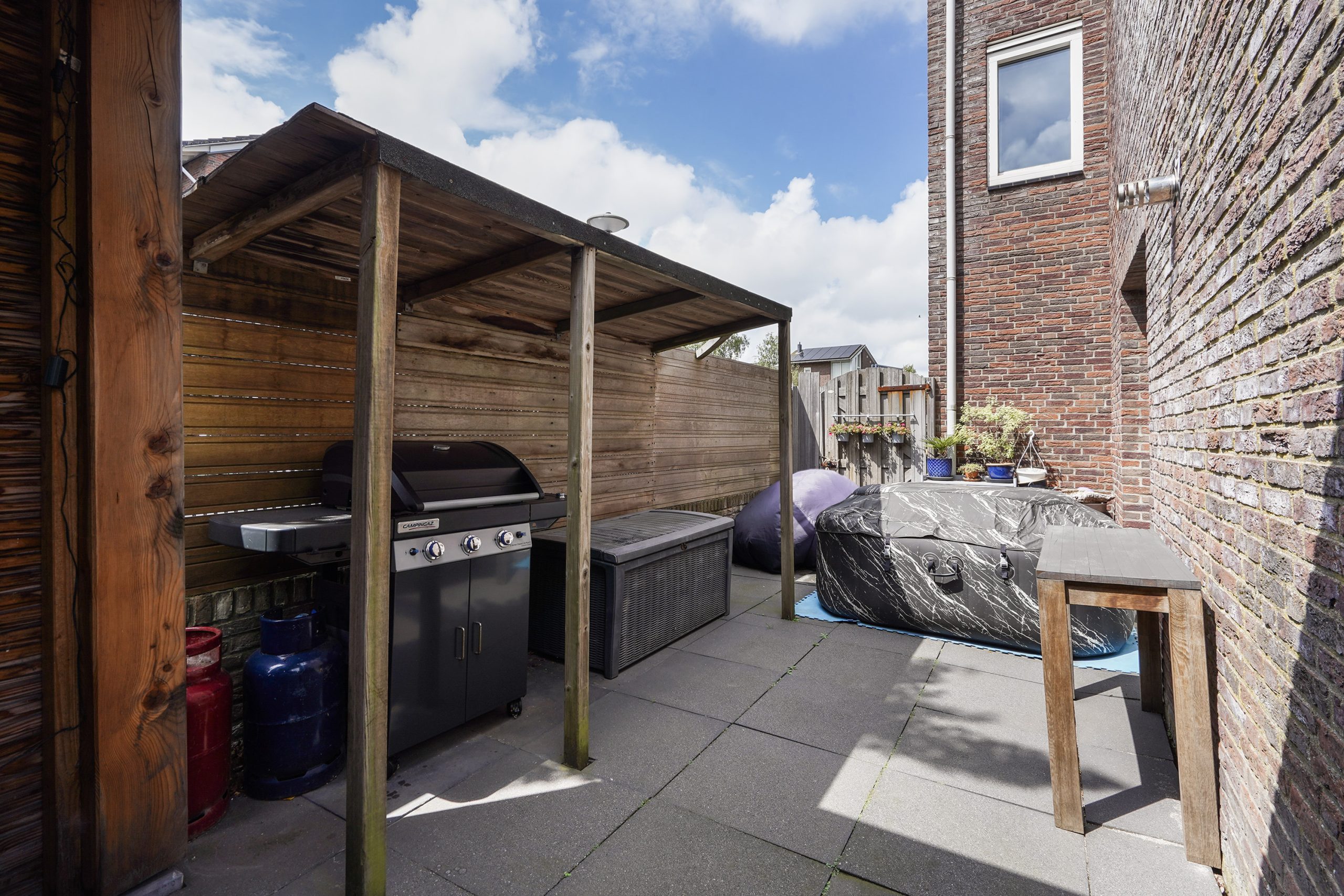 Front garden, entrance hall with fuse box and separate toilet. The bright living room with open kitchen is a perfect place to gather. The kitchen is equipped with modern built-in appliances such as a dishwasher, Quooker tap, 6-burner Boretti gas stove with convection oven, a conventional oven, and a microwave. From the living room you step directly into the garden, where a spacious, electrically connected roofed terrace has recently been added – perfect for enjoying your outdoor space all year round. A practical detached storage shed completes the garden.