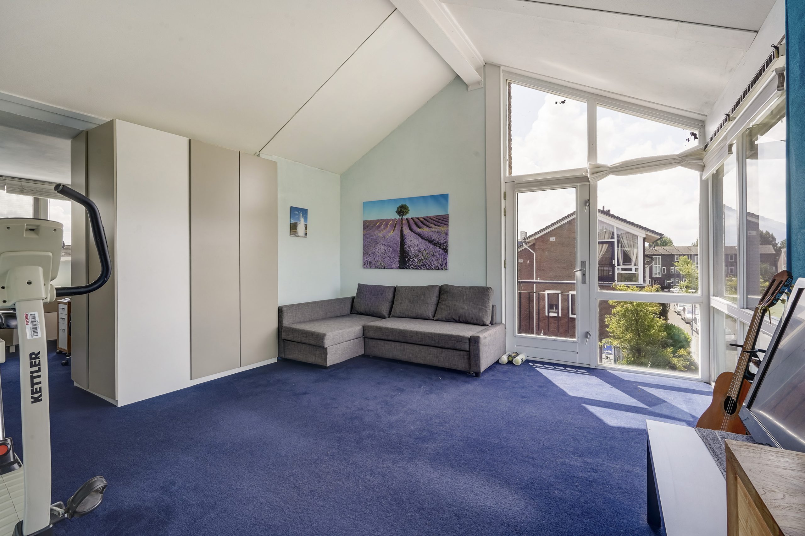 Landing with washing machine connection and central heating unit. A large bedroom with workspace is also located here, ideal as a home office or extra bedroom.